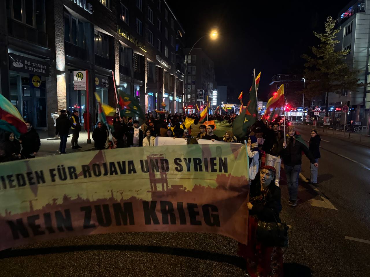 HAMBURG – Almanya’nın Hamburg şehrinde Tevgera Ciwanên Şoreşger (TCŞ), Türk devleti ve desteklediği grupların Kuzey ve Doğu Suriye’ye yönelik saldırılarını protesto etmek amacıyla bir yürüyüş düzenledi. Eylemde gençlerin alanlarda işgal saldırılarına karşı olması çağrısı yapıldı. Gençler eylemlerinde direnişi büyütme vurgusu yaptı.