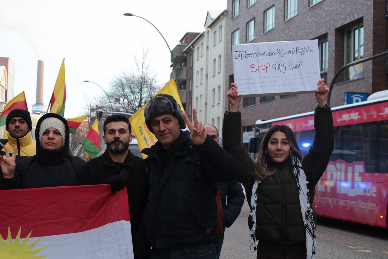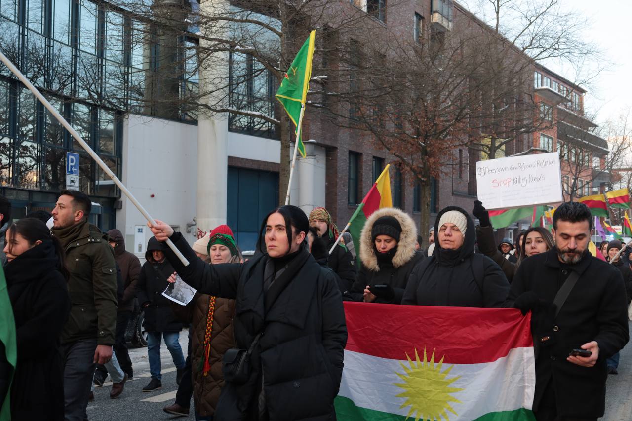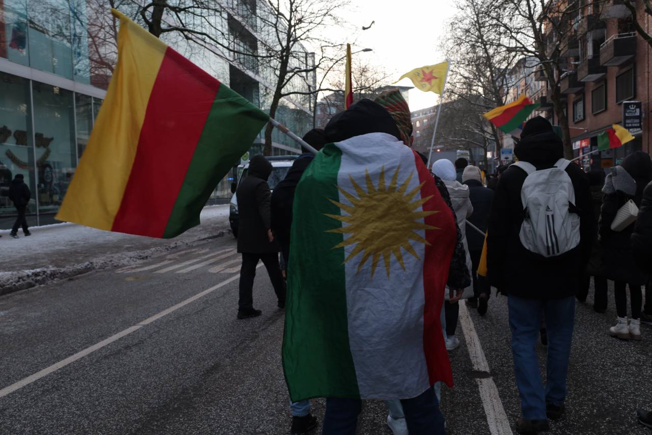 HAMBURG- Almanya’nın Hamburg şehrinde Tevgera Ciwanên Şoreşger (TCŞ) gençleri öncülüğünde bir araya gelen Kurdistan halkı Rojava’da Geçici Suriye Hükümetinin yaptığı katliamlara karşı ve Rojhilat halkının İran islam devletine karşı yapmış olduğu direnişe destek amaçlı yürüyüş gerçekleştirdiler.