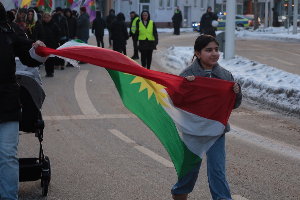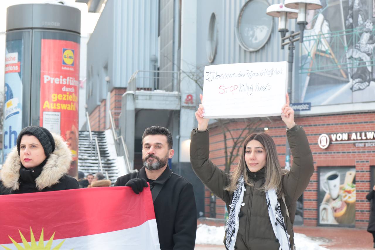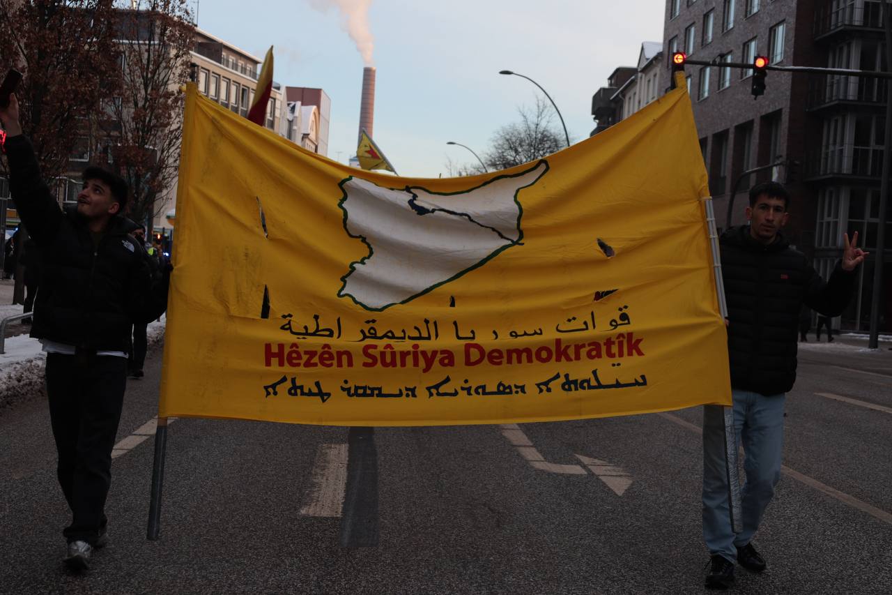 HAMBURG- Almanya’nın Hamburg şehrinde Tevgera Ciwanên Şoreşger (TCŞ) gençleri öncülüğünde bir araya gelen Kurdistan halkı Rojava’da Geçici Suriye Hükümetinin yaptığı katliamlara karşı ve Rojhilat halkının İran islam devletine karşı yapmış olduğu direnişe destek amaçlı yürüyüş gerçekleştirdiler.
