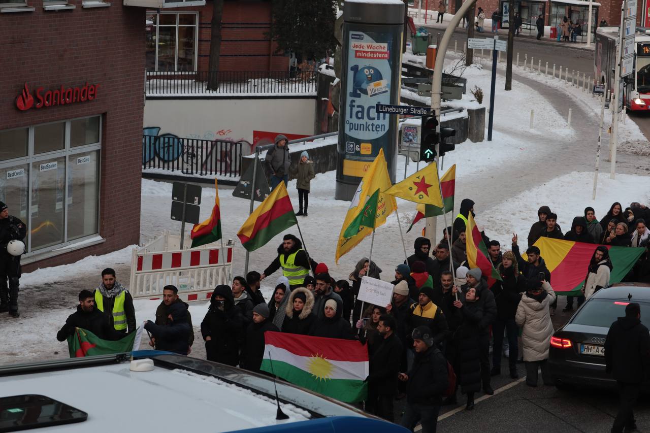 Hamburg Marktkauf-center de başlayan kalabalık yürüyüş müzikler ve sloganları eşliğinde yürüyüşlerini Harburg Rathaus’a kadar devam ettirdi. Yürüyüş esnasında açıklama yapan TCŞ üyesi Ferhat Nisebîn “Sesinizi Kürt halkına verin,Sesinizi Kurdistan halkına verin mücadelemizi her daim yürütelim” açıklamasının ardından eylemin bitiş yerinde açıklama yapan TCŞ üyesi gençler açıklamada direniş sözlerini yenileyerek dünya halklarına çağrıda bulundu. Açıklamanın devamında ise gençler;