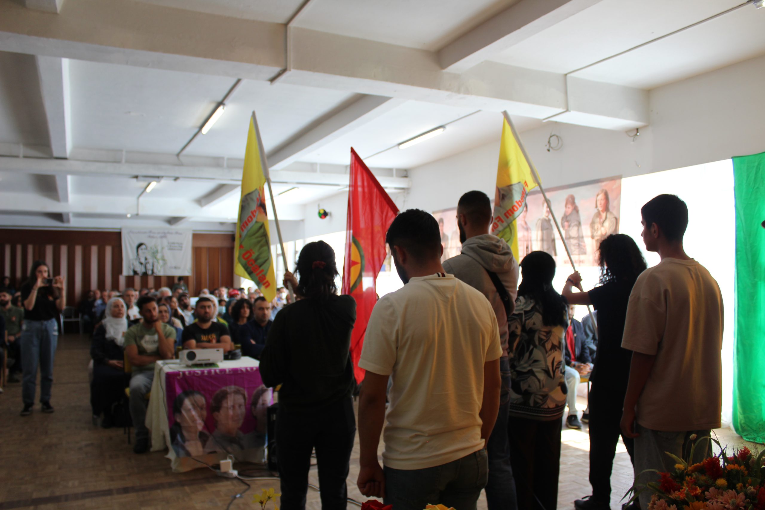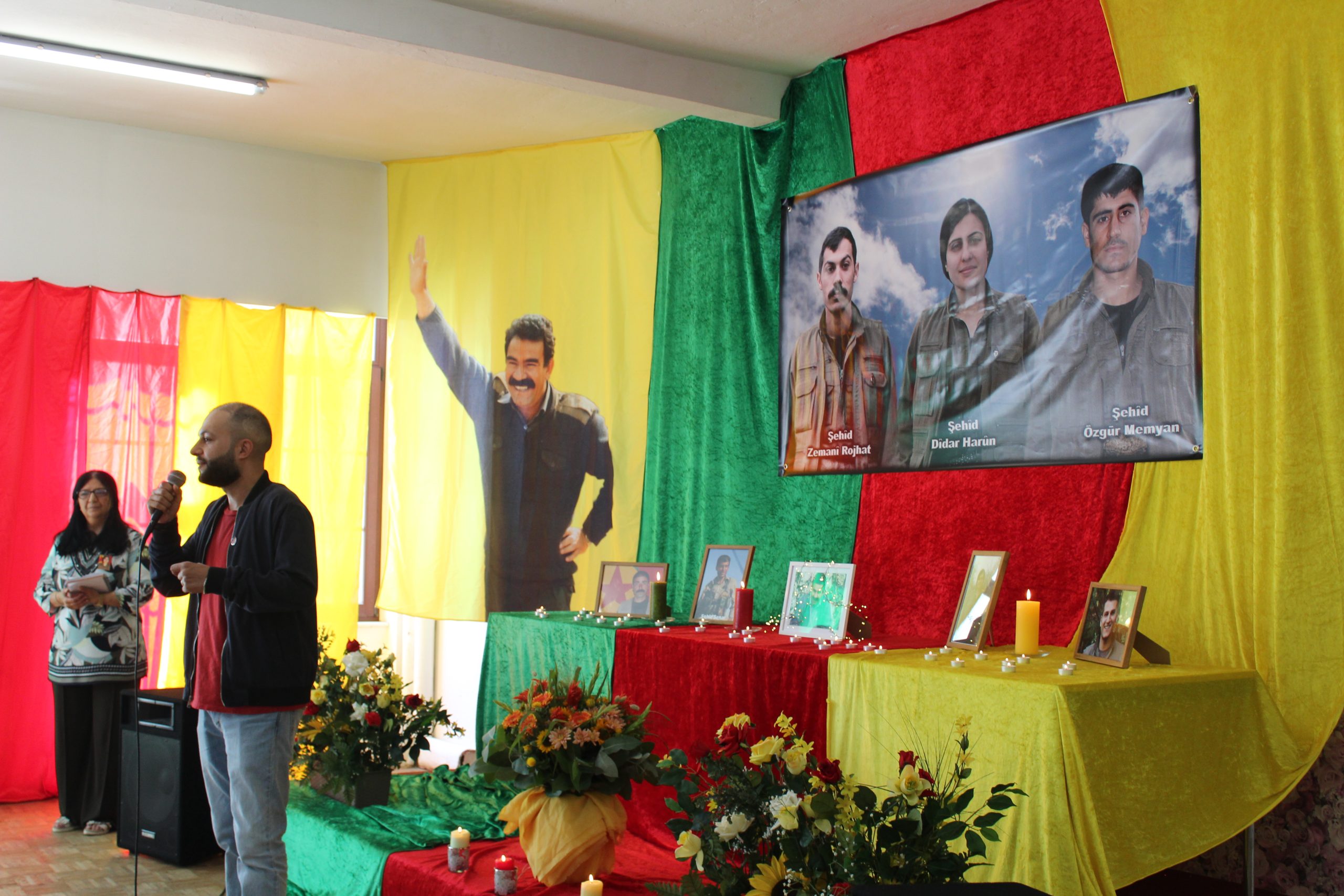 Anma Şehit Dîdar şahsında tüm devrim şehitleri anısına bir dakikalık saygı duruşu ve ”Bijî Serok APO!”, “Şehîd Namirin!” sloganlarıyla başladı.