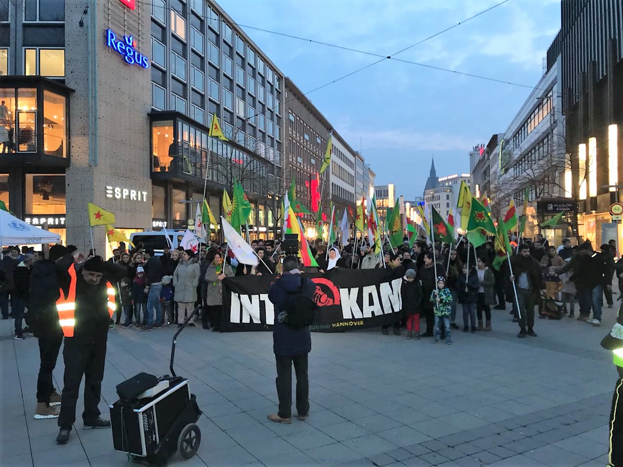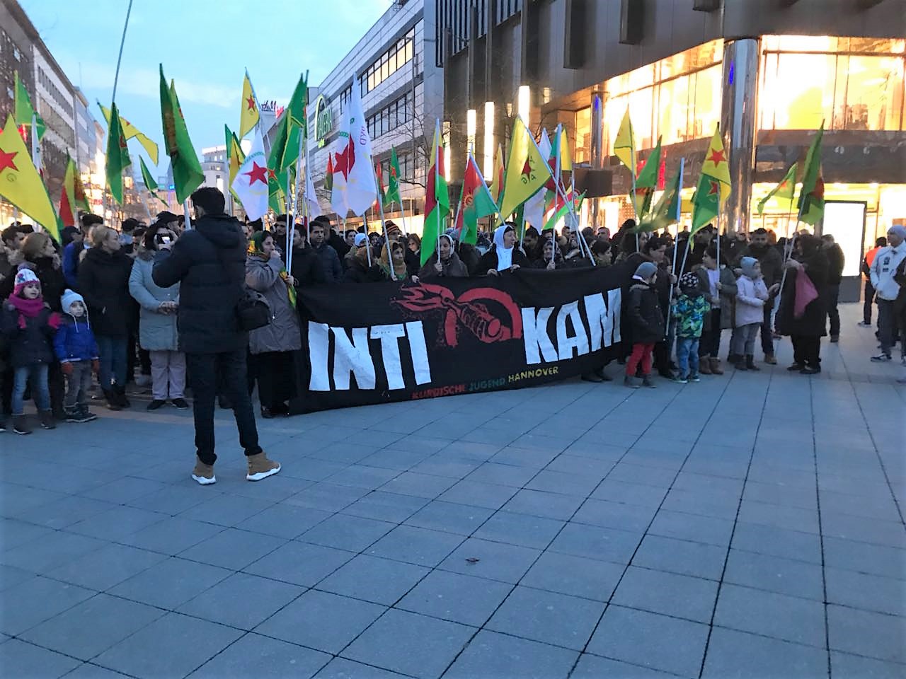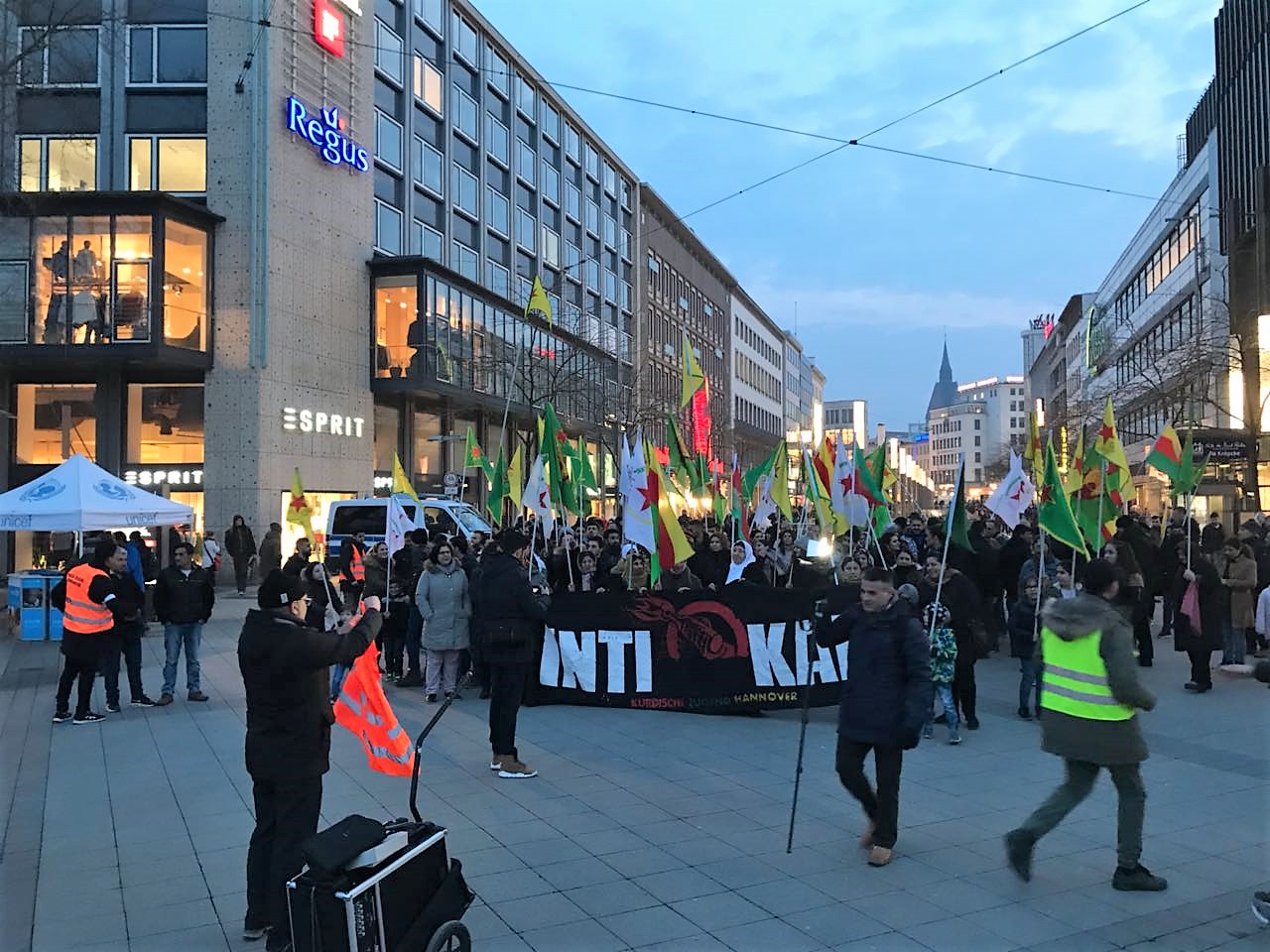 Yaklaşık 500 genç ve yurtsever kitlenin Hannover merkezi istasyonunda Efrîn direnişi selamlamak ve faşist TC devletinin işgal girişimini protesto etmek amacıyla spontane yürüyüş düzenledi. Eylemde Alman devletinin faşizmle işbirliği de protesto edildi.