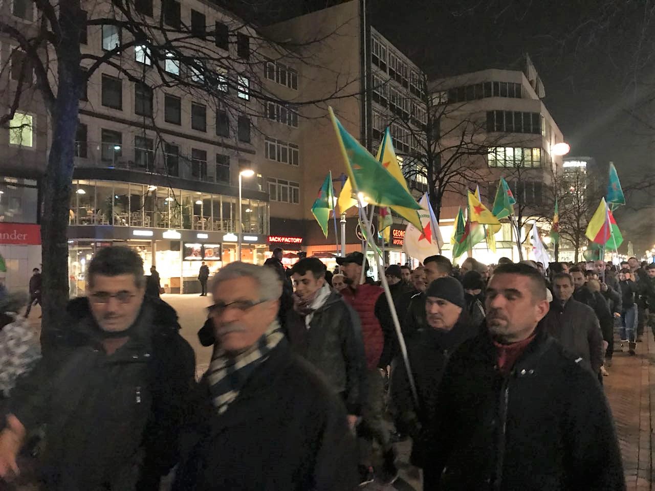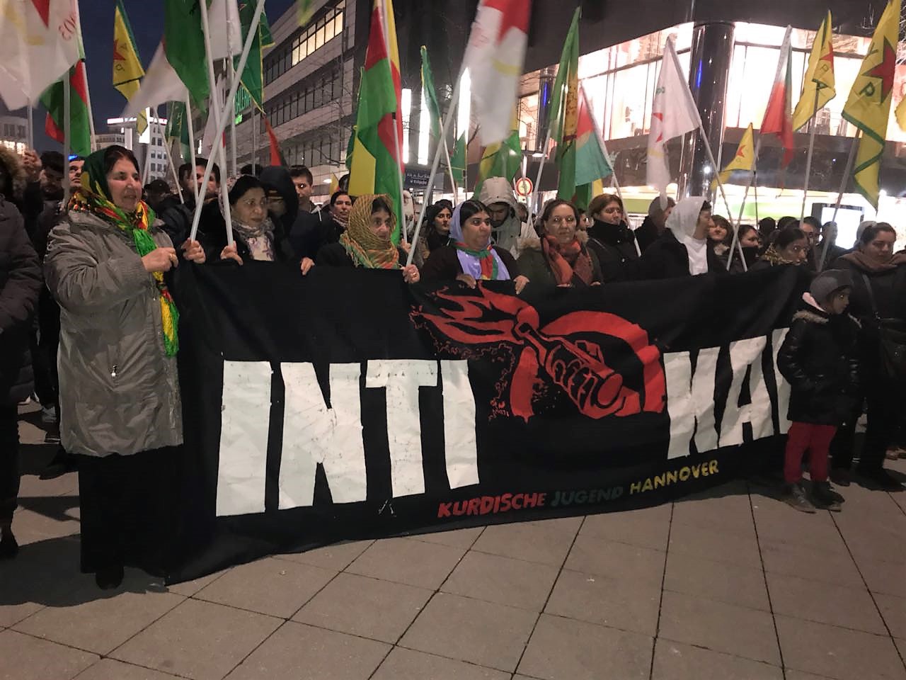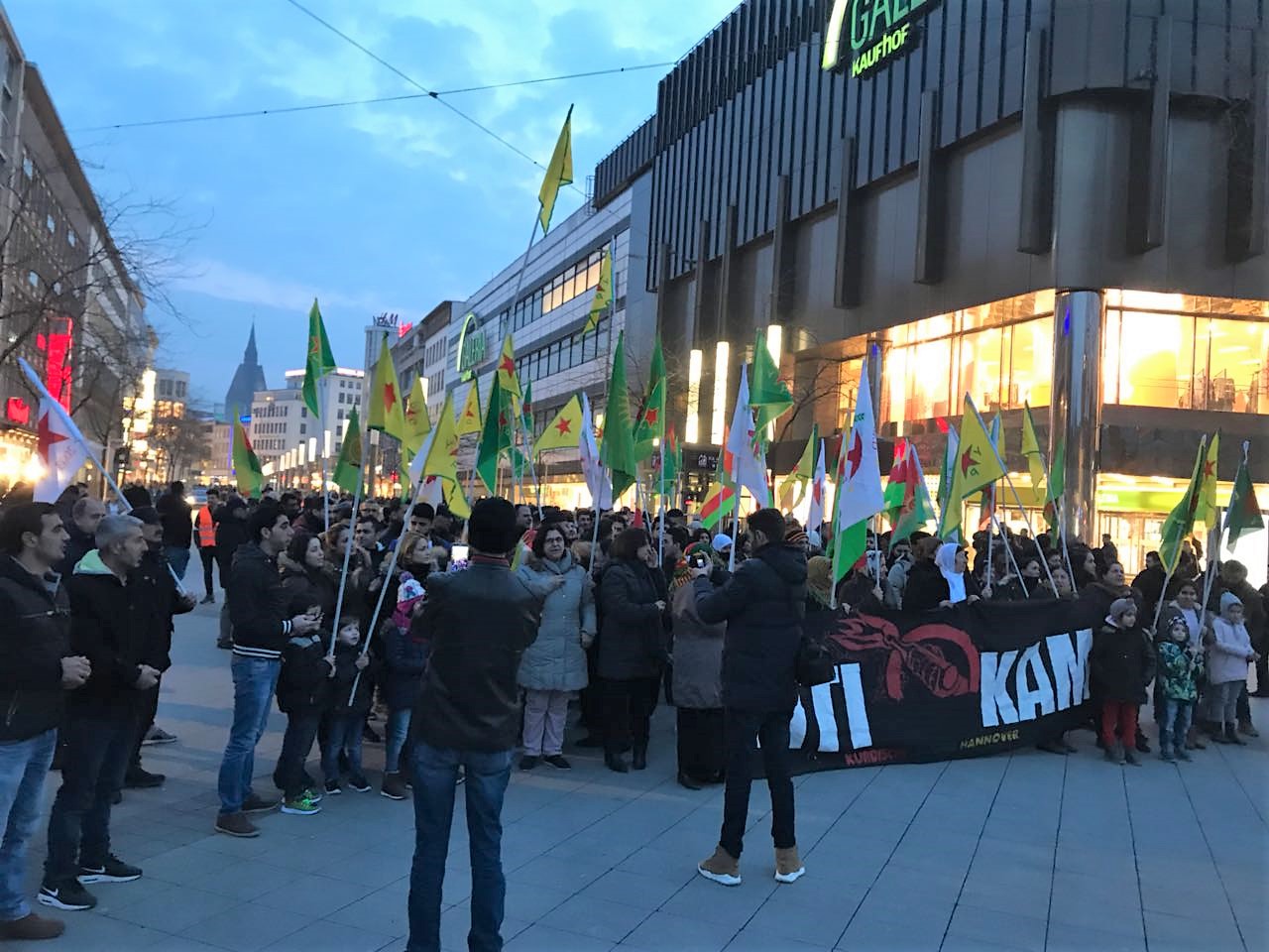 Yaklaşık 500 genç ve yurtsever kitlenin Hannover merkezi istasyonunda Efrîn direnişi selamlamak ve faşist TC devletinin işgal girişimini protesto etmek amacıyla spontane yürüyüş düzenledi. Eylemde Alman devletinin faşizmle işbirliği de protesto edildi.