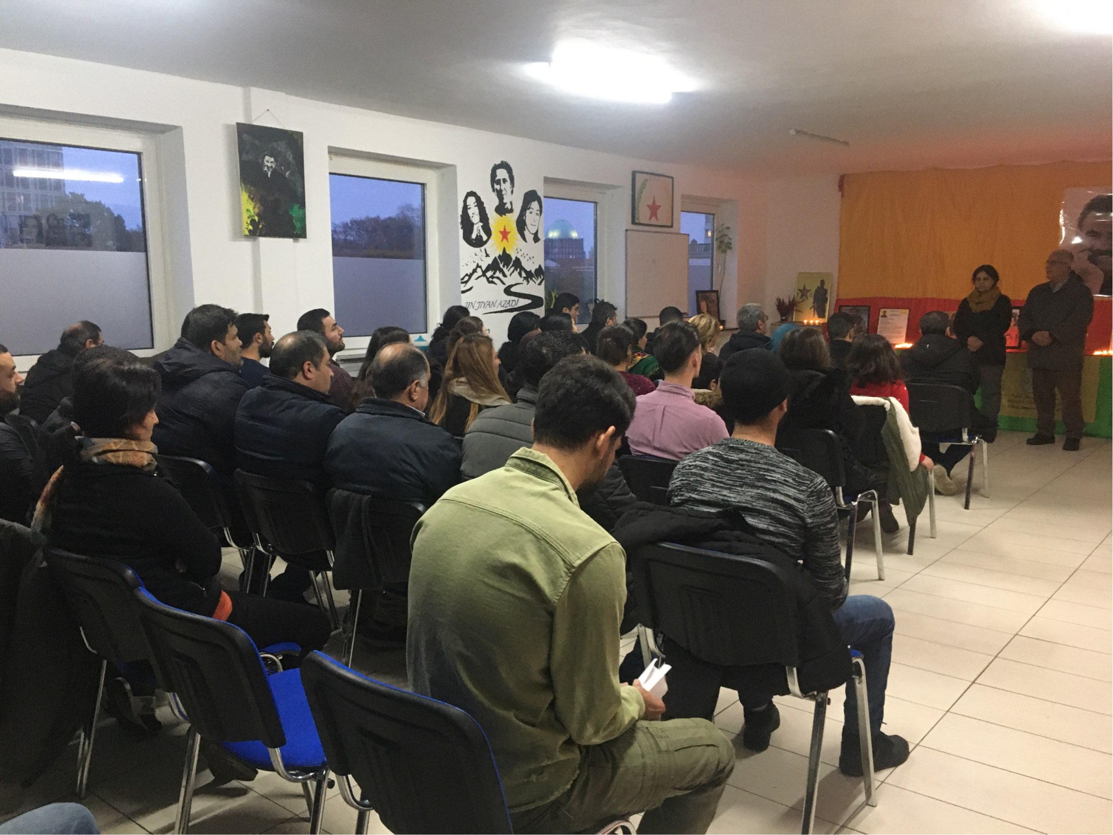 Konuşmalardan sonra Welat Erdemci’nin bir arkadaşı O’nun anısına yazdığı bir şiiri okudu ve Şehit Çekdar Qamişlo anısına hazırlanan sinevizyon gösterildi.