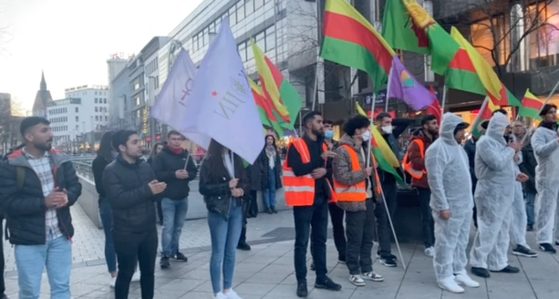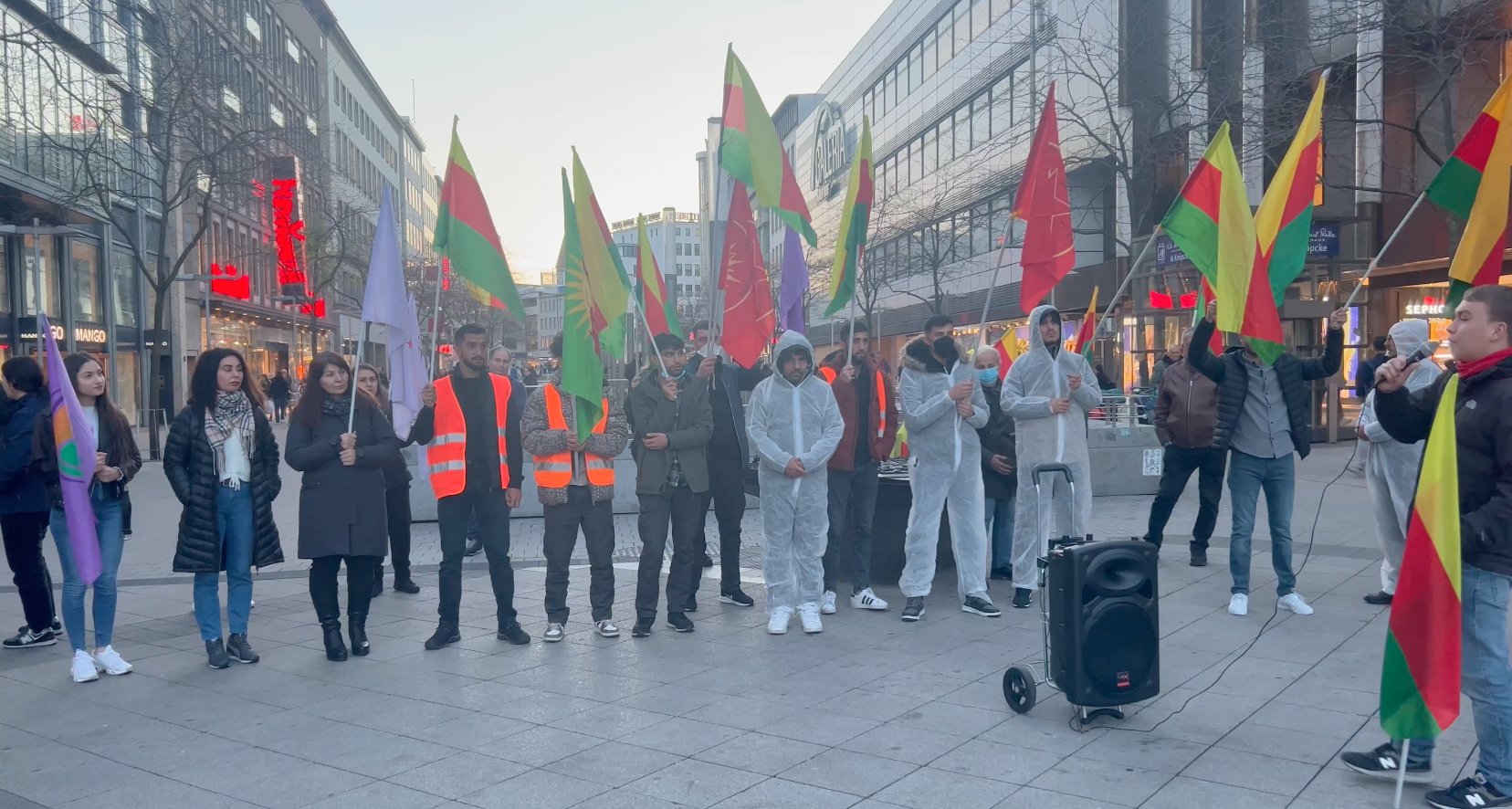 Miting, tüm Kürdistan Devrim Şehitleri anısına 1 dakikalık saygı duruşu ardından Almanca ve Kürtçe bildiriler okunarak İşgalci Türk ordusunun savaş suçlarına dikkat çekildi.
