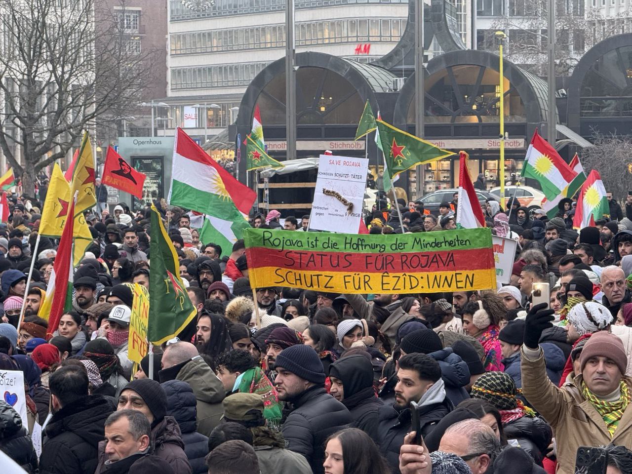 HANNOVER- Almanya’nın Hannover kentinde TCŞ (Tevgera ciwanên Şoreşger) ve Hannover halk Meclisi öncülüğünde Opernplatz’ta Rojava ile dayanışma amacıyla kitlesel yürüyüş düzenlendi. 15 bini aşkın kişinin katıldığı eylemde, Rojava’ya yönelik saldırılar protesto edildi ve uluslararası kamuoyuna sessiz kalmama çağrısı yapıldı.