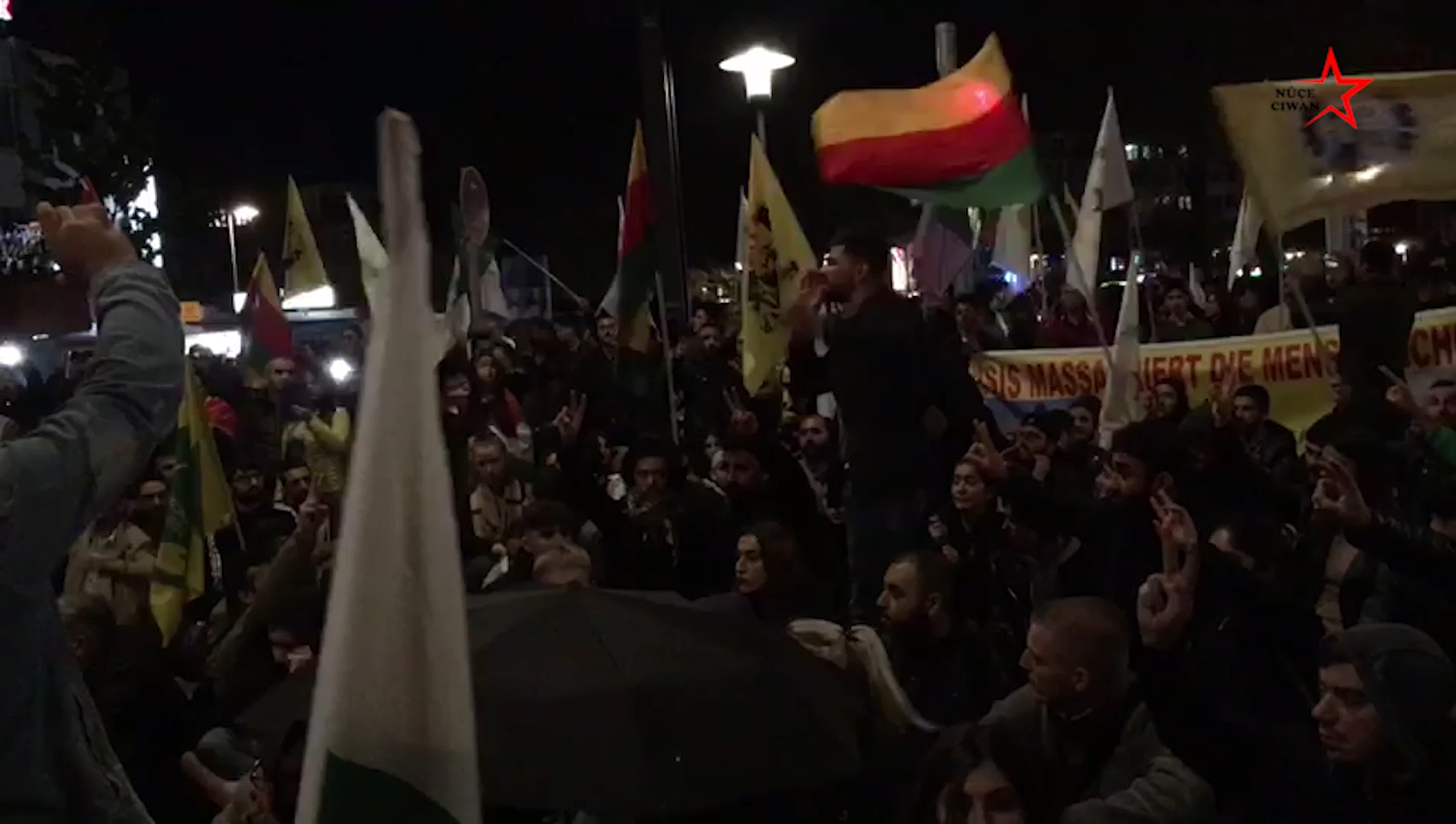 HANNOVER – Almanya’nın Hannover şehrinde bugün işgalci Türk devletinin Serêkaniyê’deki hastane ve şehir merkezine yaptığı yoğun saldırı ve bu saldırılarda kimyasal silahlar kullanmasından dolayı binlerce Kürt ve enternasyonalist sokaklara çıktı. Şehrin en yoğun yerinde toplanan eylemciler, bir süre yürüdükten sonra yolu trafiğe kapatarak oturma eyleminde bulundu. Burada slogan ve marşlarla yaklaşık 20 dakika eylem yapan kitle daha sonra tekrar yürüyüşe devam etti. Gençlerin, faşist Türk devletine karşı duydukları öfke göze çarparken, gençler her yerin Rojava, her yerin direniş alanı olacağını belirttiler.