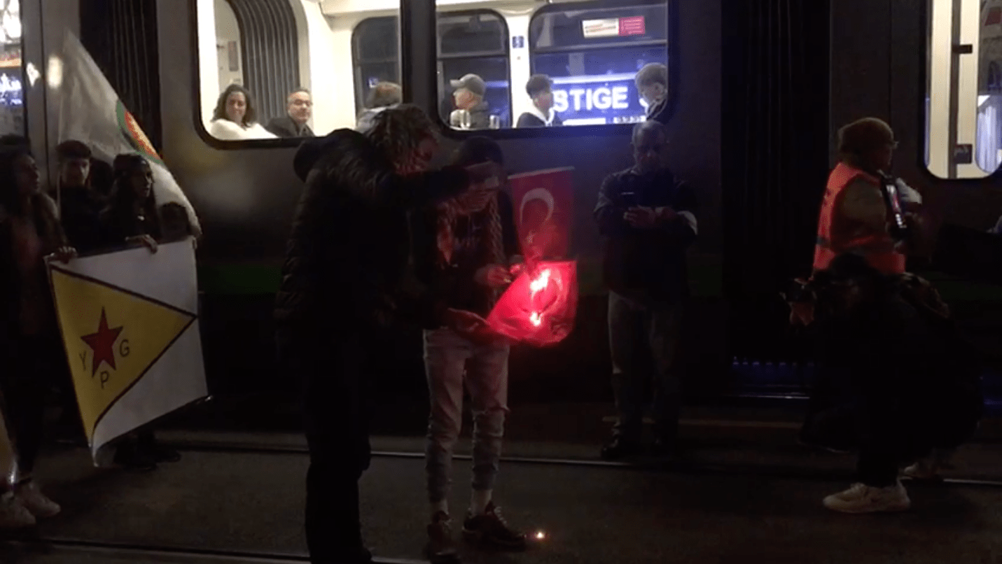 HANNOVER – Avrupa’da yaşayan Kürt gençleri eylemlerine aralıksız devam ediyor. Almanya’nın Hannover şehrinde yaşayan gençler bugün Hannover şehir merkezinde yolları işgal etti ve faşist Türk devletinin Rojava’ya dikmek istediği bayrakları yaktılar.