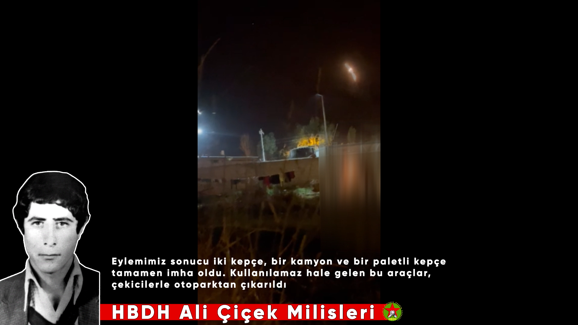HABER MERKEZİ- HBDH Ali Çiçek Milisleri, Tolhildan Tekman için,1 Eylül gecesi Şırnak’ta kayyuma ait otoparka dönük eylem gerçekleştirdi.