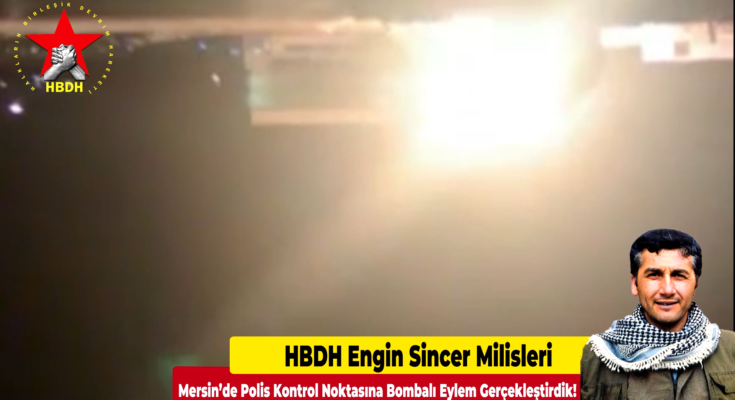 HABER MERKEZİ- HBDH yayınladığı yazılı bir açıklama ile 19 Mayıs günü gece saat 23:00 sularında Mersin-Adana yol güzergahında polislerin asayiş kontrolü yaptığı noktaya HBDH Engin Sincer (Erdal) milislerinin gerilla alanlarında süren işgal operasyonlarına karşı bombalı saldırı eylemi gerçekleştirdiklerini duyurdu