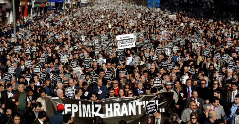 “Sevdiklerinin Hrant’a yakıştırdıkları ‘Keman’, İstanbul’da kırıldı. Tıpkı 107 yıl önce Ermeni halkının yetiştirdiği ünlü müzik ustası Gomidas’ın kırdıkları piyanosu gibi kırdılar ‘Keman’ı. Faşist kurşun sadece özgür fikre sıkılmadı aynı zamanda özgür bir sese de sıkıldı. Yere yıkmak istedikleri sadece Hrant’ın bedeni değildi aynı zamanda onun soykırım karşısındaki devrimci tutumu ve özgürlük düşleriydi.