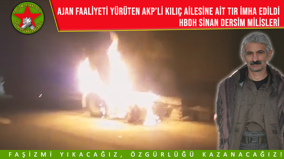 HBDH, ajan faaliyeti yürütenAKP İl Başkanı Faruk Kılıç ve karşı devrimci faaliyet yürüten Ali Kılıç’a ait tırı imha etti.