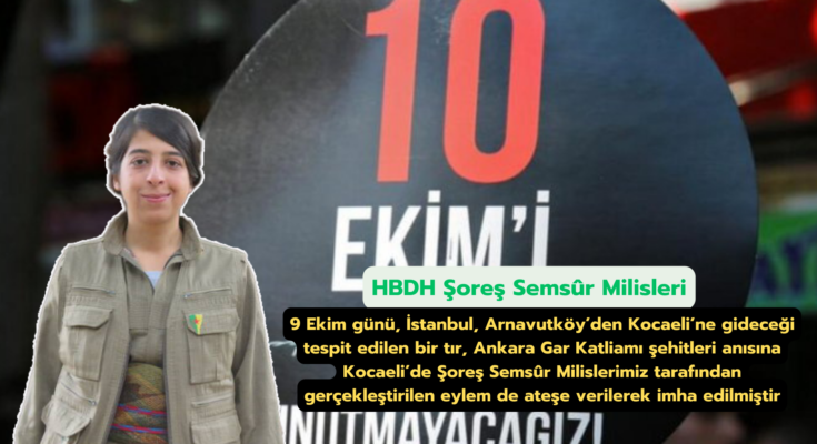 Açıklamada, 9 Ekim günü, İstanbul, Arnavutköy’den Kocaeli’ne gideceği tespit edilen bir tırın Şoreş Semsûr Milisleri tarafından Kocaeli’de ateşe verildiği belirtildi.