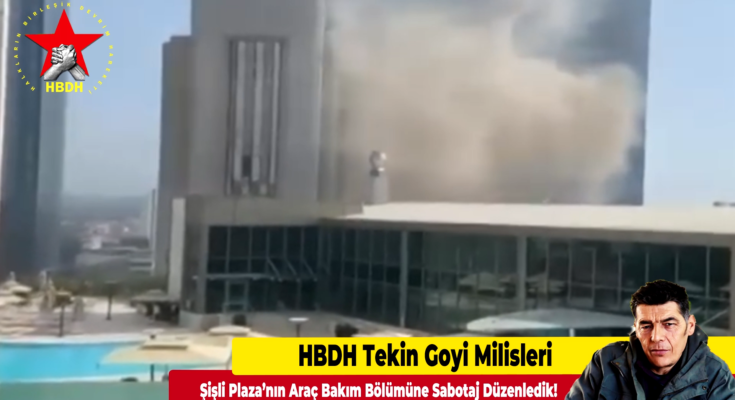 HABER MERKEZİ- HBDH Tekin Goyi Milisleri, “3 Eylül öğlen 13:30 civarında Şişli-Fulya 19 Mayıs Caddesinde bulunan Şişli Plaza’nın bodrum katı olan -1 ve -2 de yer alan araç bakım ve servis bölümü milislerimiz tarafından hedeflenmiştir. Sabotaj taktiği ile söz konusu alan yakılmış tüm bina ve çevre eylemle paniğe girmiştir. Zengin ve dokunulmaz plazalarda rahat olacağını düşünenler tedirginlik içinde yaşamaya devam edeceklerdir!” dedi.