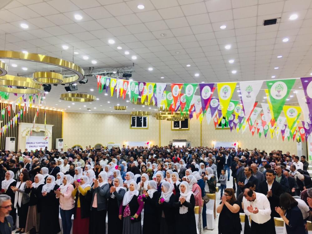AMED – Halkların Demokratik Partisi (HDP) Amed İl Örgütü, “Zulme karşı direniyoruz, kazanacağız” şiarıyla Demirok Tesisleri’nde 2’nci Olağanüstü Kongresini gerçekleştirdi. Kongreye HDP Eş Genel Başkanı Sezai Temelli, HDP Diyarbakır Milletvekilleri, Diyarbakır Büyükşehir Belediyesi Başkanı Selçuk Mızraklı, Bismil, Silvan, Bağlar, Yenişehir, Kayapınar belediye eşbaşkanları ve meclis üyeleri, tutsak yakınları ile yüzlerce yurttaş katıldı. Kongrenin gerçekleştiği salona, “Ortak vatan, demokratik Cumhuriyet”, “Tecrit insanlık suçudur”, “Barış tecrit edilemez”, “Direniş ruhuyla genç kadınlar özgürleşiyor, tecridi kırıyor”, “Mutlaka kazanacağız”, “Kadınların direnişi ile başaracağız”, “Onurlu yurttaşlık, onurlu yaşam”, “Açlık öldürmez, sessizlik öldürür” ve “Leyla Güven onurumuzdur” yazılı pankartlar asıldı.