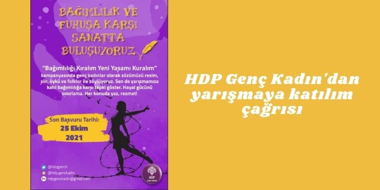 AMED – Halkların Demokratik Partisi (HDP) Gençlik Meclisi, uyuşturucu ve fuhuşa karşı “Bağımlılığı kıralım, yeni yaşamı kuralım” şiarıyla başlattığı kampanya çalışmalarına devam ediyor. HDP Genç Kadın Meclisi de kampanya kapsamında fuhuşa ve uyuşturucuya karşı resim, şiir ve öykü yarışması düzenledi. 29 Eylül tarihinde başlayan başvurulara bütün genç kadınlar konu sınırlaması olmaksızın katılabilecek. Genç kadınlar 25 Ekim’de son bulacak başvurulara güçlü katılım için Amed’in, Bağlar, Sur ve Kayapınar ilçelerinde afiş çalışması yaptı.