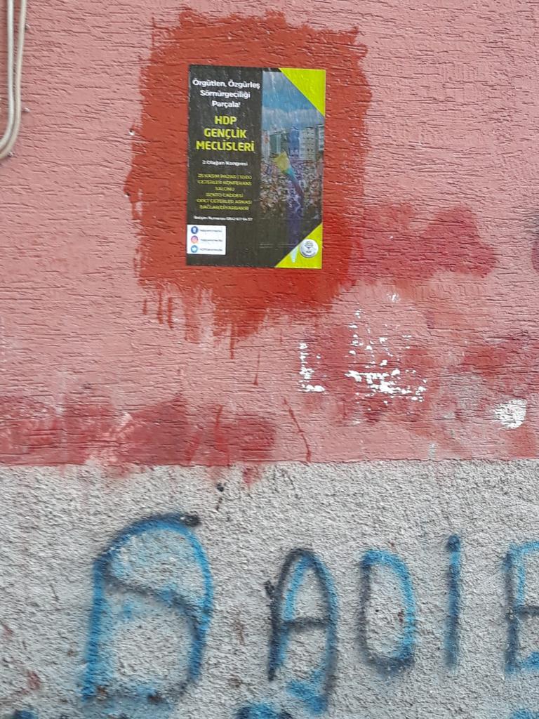 HABER MERKEZİ – Halkların Demokratik Partisi (HDP) Gençlik Meclisi, “Örgütlen Özgürleş, Sömürgeciliği Parçala” şiarıyla 25 Kasım Pazar günü Amed’de Bağlar ilçesinde bulunan Geterler Kongre ve Konferans Salonu’nda 2. Olağan Kongresi’ni gerçekleştirecek. Kongre çalışmaları kapsamında sokaklara çıkan gençler, afiş astı. Bağlar ve Kayapınar ilçelerinde ise bildiri dağıtımı ile gençler kongreye davet edildi.