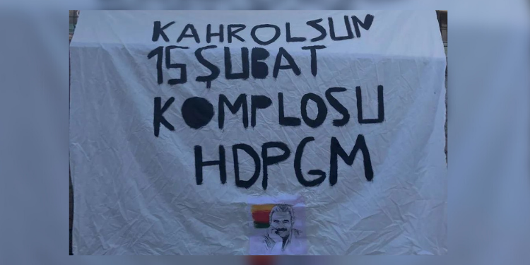 İStanbul Nurtepe’de pankart asan HDP Gençlik Meclisi twitter hesabından “15 Şubat 1999’da uluslararası bir komplo ile İmralı hapishanesine getirilen Sayın Abdullah Öcalan’ın üzerinde tecrit son bulana kadar ve komplo da parmağı olan tüm ülkeler Kürt halkına hesap verecek!” dedi.