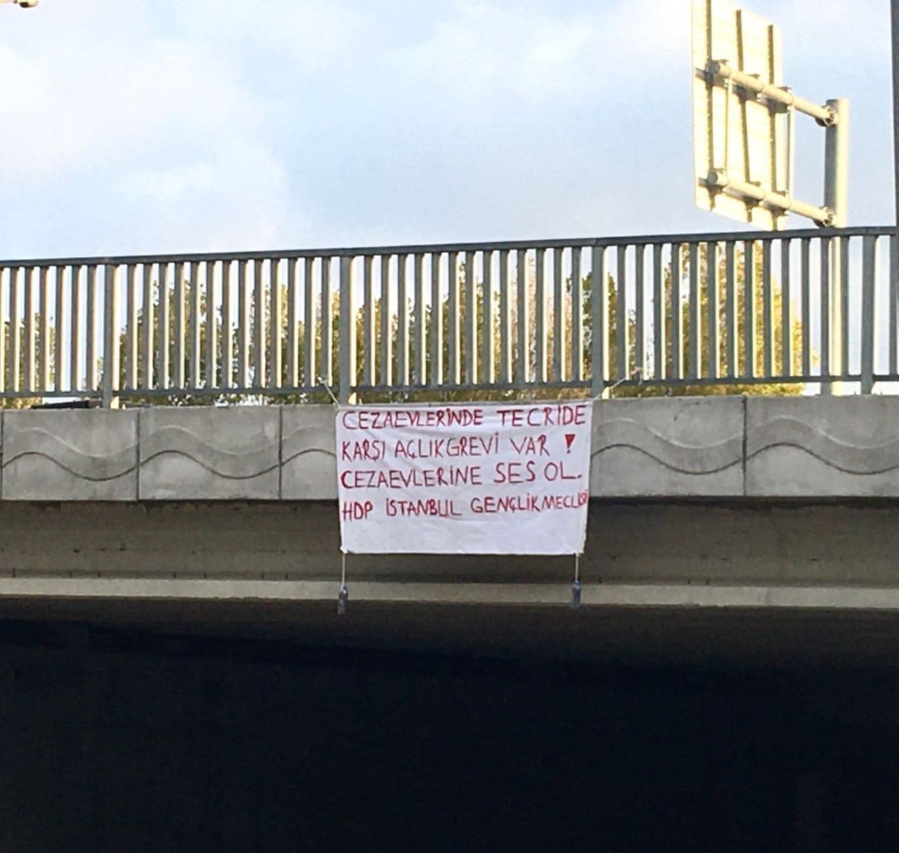 HABER MERKEZİ – HDP İstanbul Gençlik Meclisi cezaevlerinde tecride karşı başlatılan açlık grevleri için İstanbul’un bir çok alanında pankart ve yazılama çalışması gerçekleştiridi.