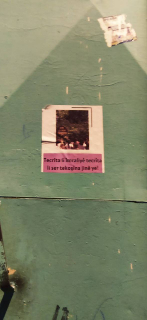 AMED – HDP Gençlik ve Genç Kadın Meclisleri Amed’in Bağlar ilçesinde 15 Şubat Komplosu’na ve Önder Apo üzerindeki tecride dikkat çekmek için duvarlara sticker yapıştırdı.