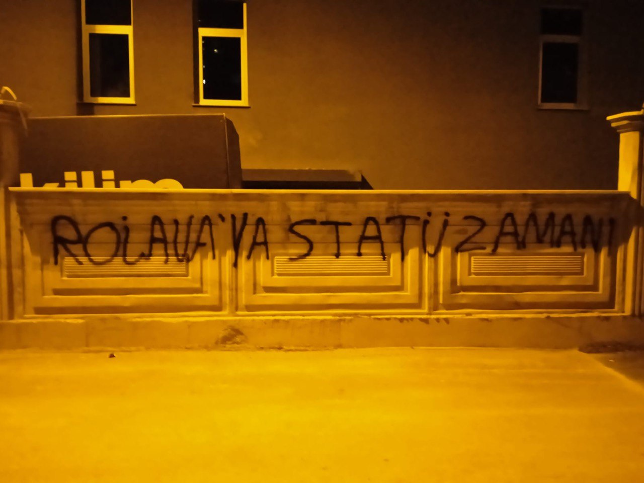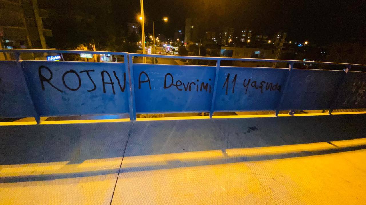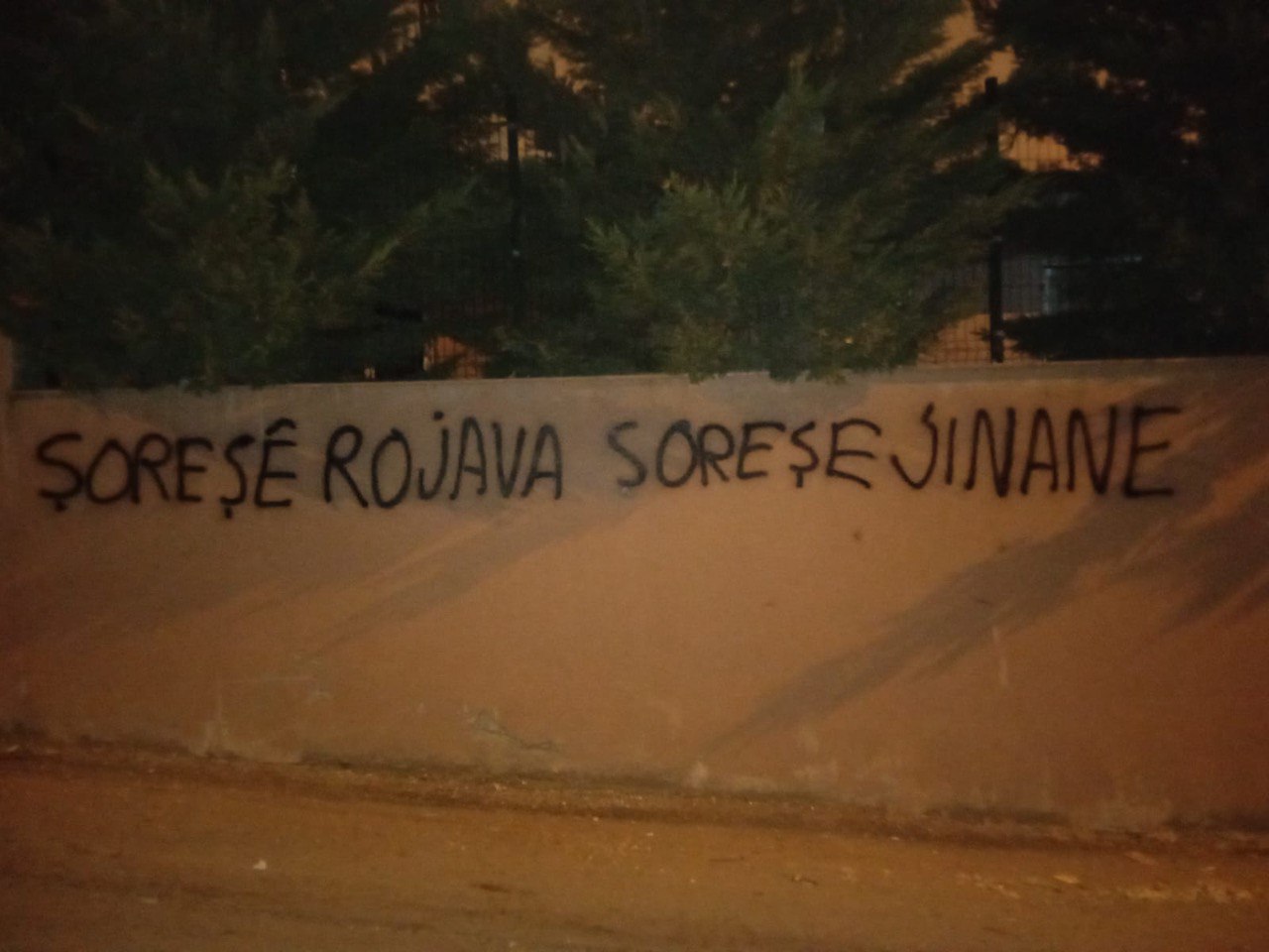 Yazılamada Önder APO’nun Rojava Ortadoğu’nun Geleceğidir sözünü kullanan gençlik üyeleri duvarlara “Rojava Devrimi Kadın Devrimidir. Rojava Devrimi 11. Yaşında” sloganları yazdılar.