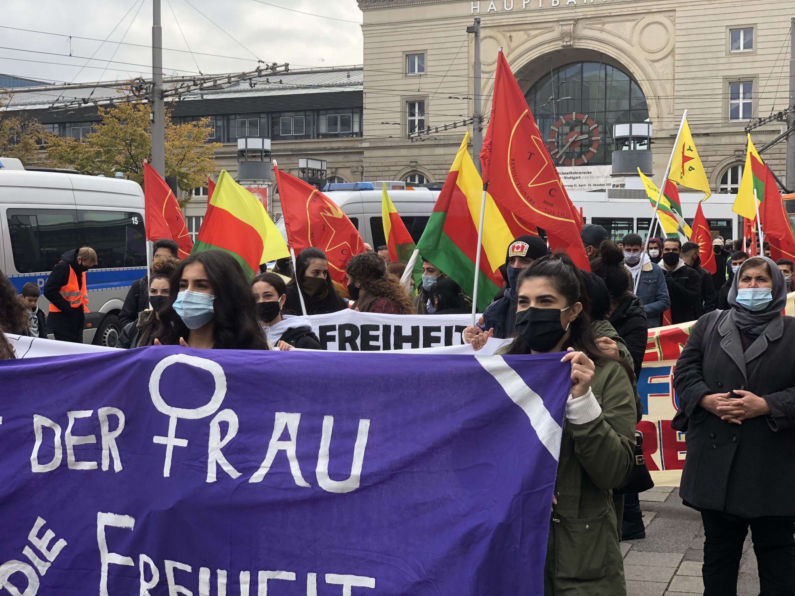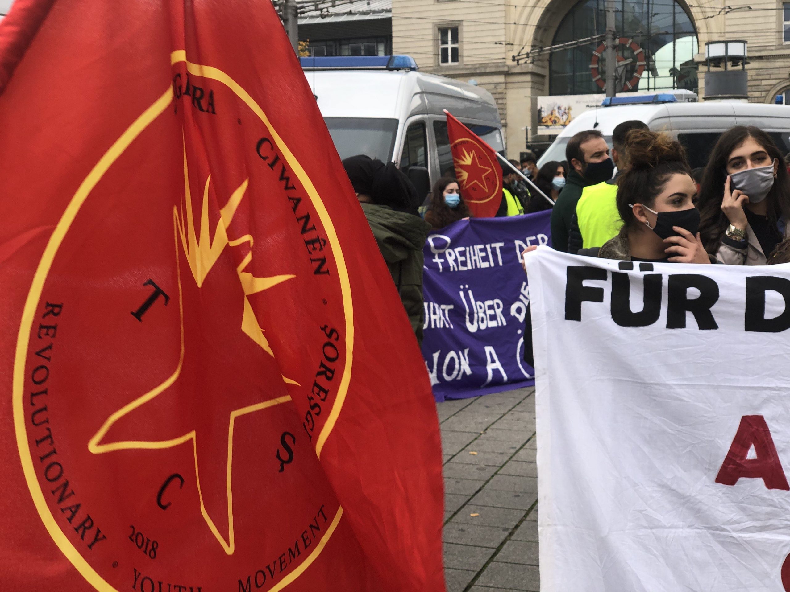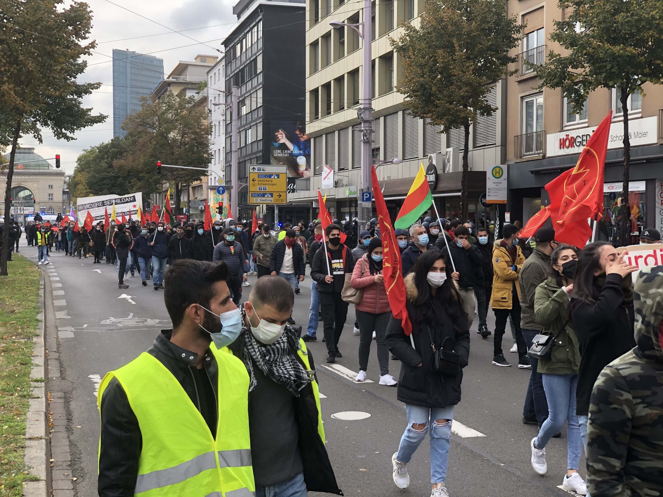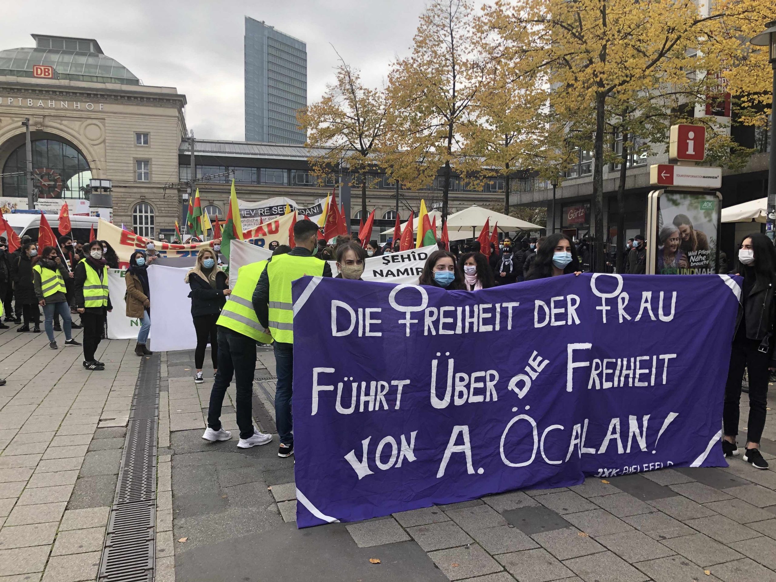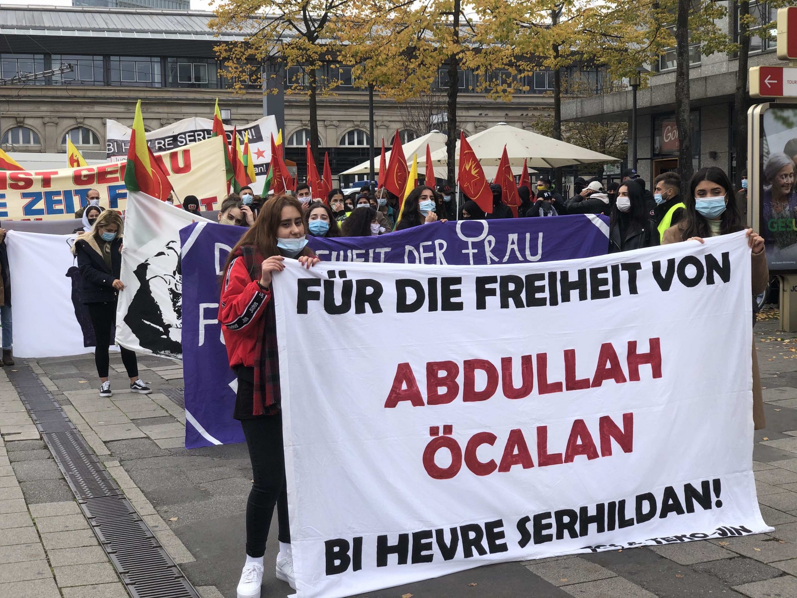 TEKO-JIN ve TCŞ’nin çağrısı ile Mannheim merkez tren istasyonu önünde saat 14.30’da toplanan yaklaşık 350 genç, “Tecride, Faşizme, İşgale Son: Bi Hev Re Serhildan” şiarıyla yürüyüşe başladılar.