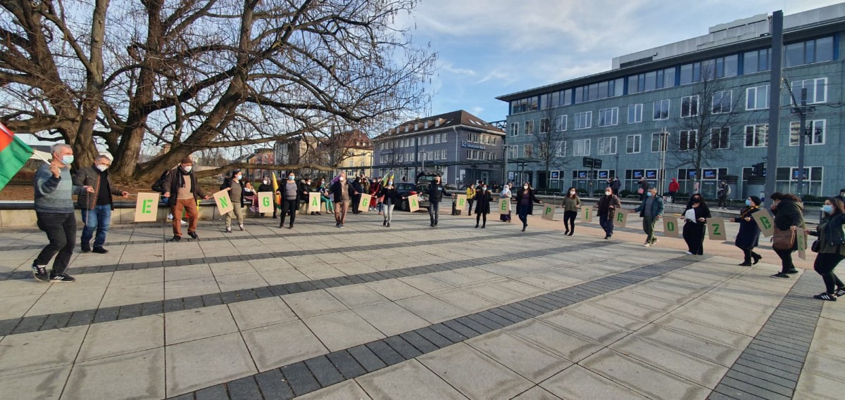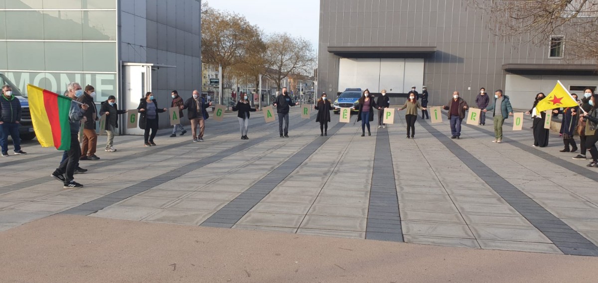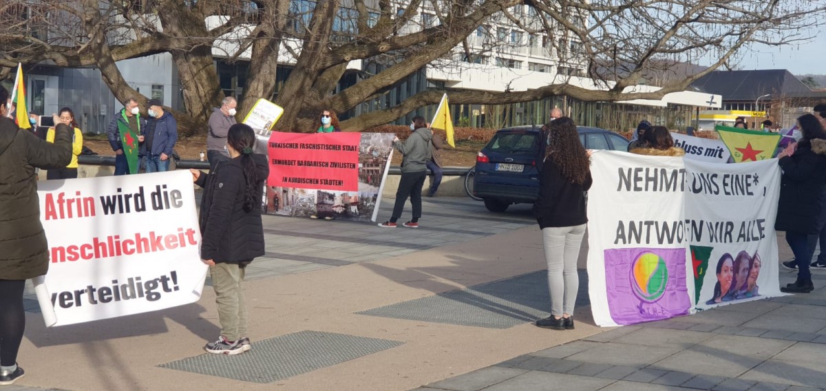 HEILBRONN – Saat 15:00’da TekoJIN ve Kürt Toplum Merkezi öncülüğünde bir araya gelen kitle, Efrîn’e yönelik işgal saldırılarının yıl dönümü için bir miting düzenledi.