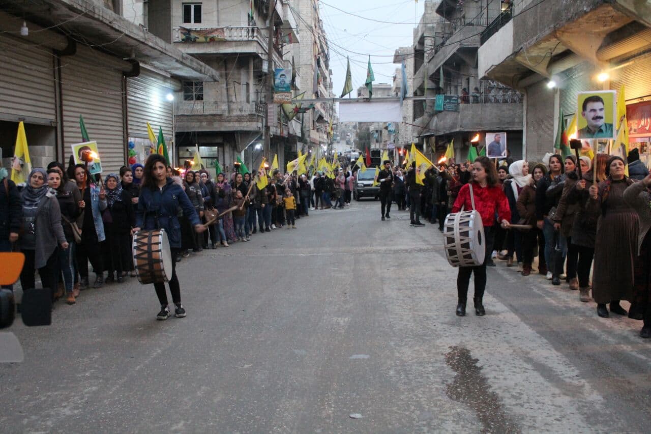 Yekîtiya Jinên Ciwan, 8 Mart'a doğru etkinliklerine başladı. Bugünde Heleb'in Şêx Meqsûd semtinde meşaleli bir yürüyüş düzenledi. Genç kadınlar, kadın devrimi özgürlüğümüzdür mesajı verdi.