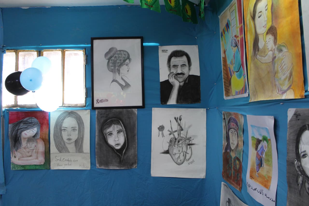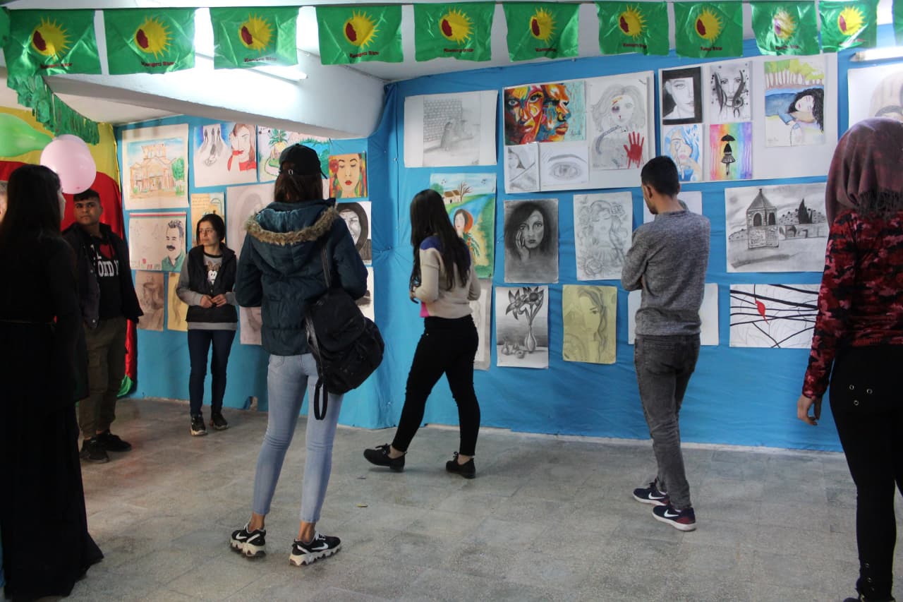 Şêxmeqsûd mahallesinde açılan sergide öğrenciler tarafından yapılan resimler yer aldı.