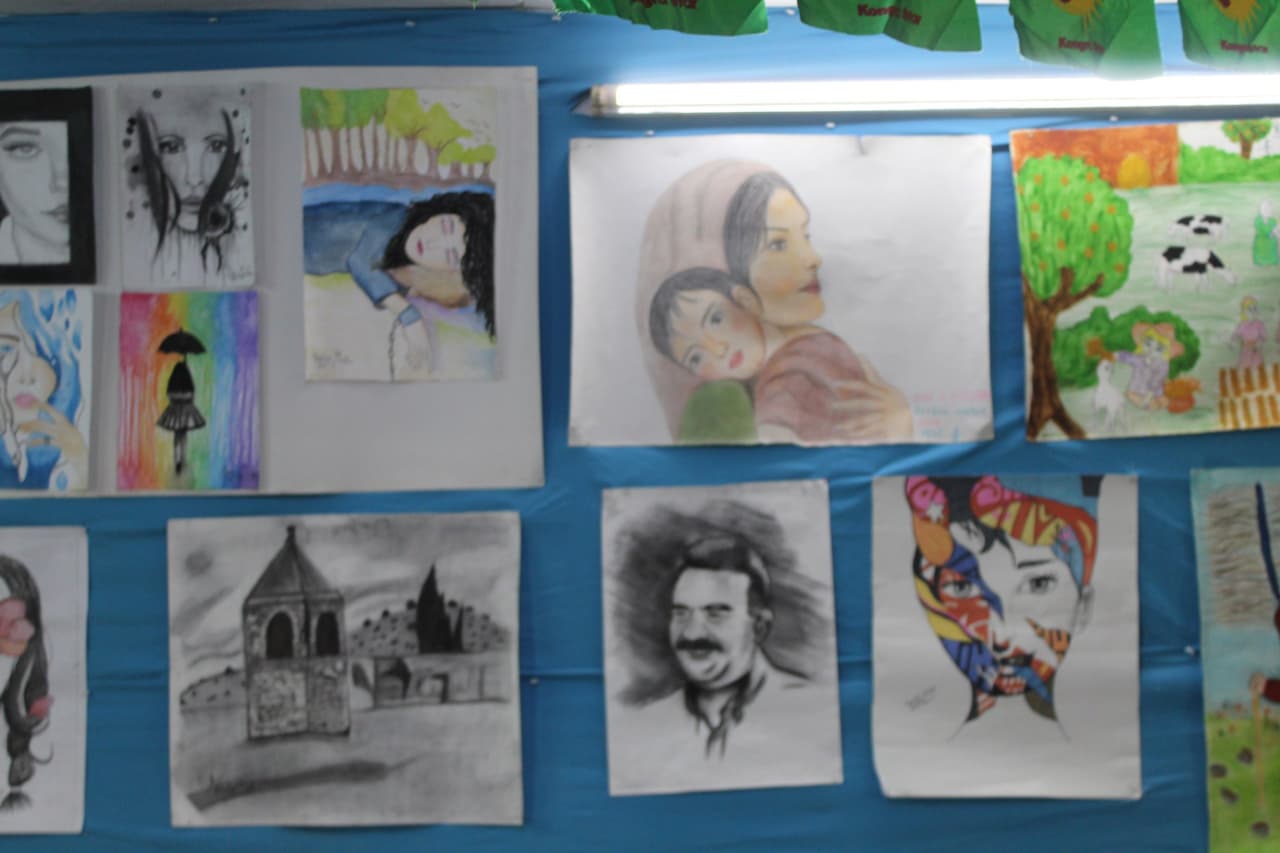 Heleb'de öğrenciler yaptıkları resimleri sergilediler.