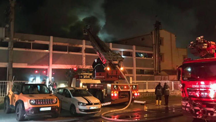 Bornova’da, endüstriyel mutfak malzemeleri üreten bir fabrikada “henüz belirlenemeyen bir nedenle” yangın çıktı. Yangın bitişikteki depoya da sıçradı. Yangında maddi hasar meydana geldi.