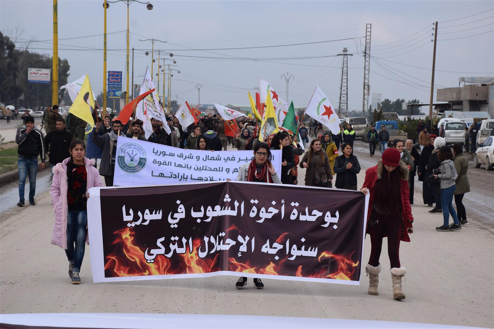 Hesekê’de gençler gerçekleştirdikleri kitlesel yürüyüş ile  işgalci Türk devletinin Rojava ve Kuzey Suriye’ye yönelik işgal tehditlerini kınadı.