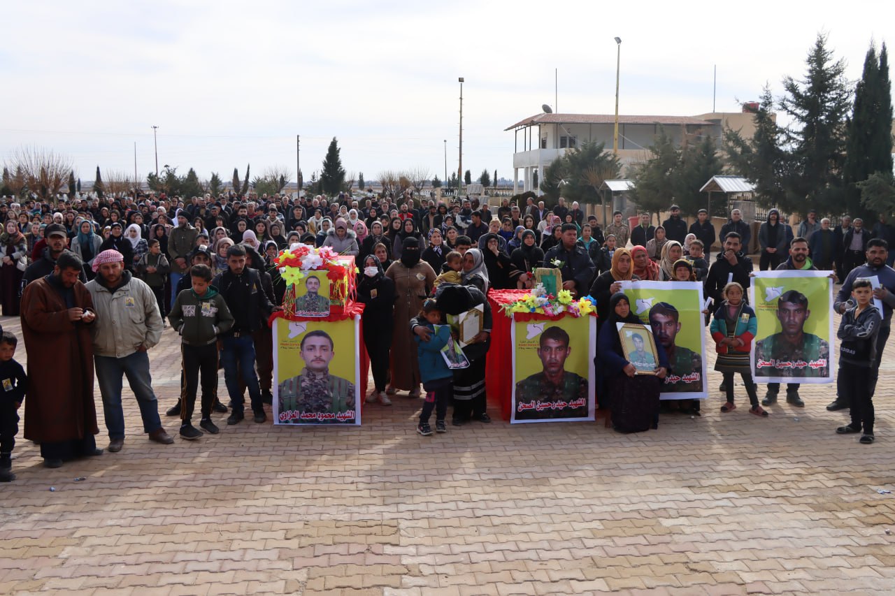 HESEKÊ- QSD savaşçıları Agiri Hesekê (Mehmud Mihemed El Ezawi) 15 Ocak 2025’te işgal altındaki Serekaniyê’nin Eliya köyünde, Nûr (Heyder Hisên El Sehen) ise 15 Aralık 2024’te Minbic’de şehit düştü. Her iki şehit için bugün Hesekê’deki Şehit Dijwar Şehitliği’nde tören düzenlendi.