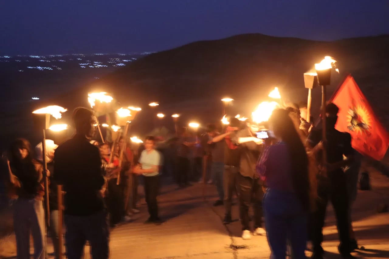 HESEKE – Devrimci Gençlik Hareketi ve Haseke Genç Kadınlar Birliği, 15 Ağustos’un yaklaşan 41. yıldönümü vesilesiyle Kewkeb Tepesi’nde meşaleli yürüyüş gerçekleştirdi. 15 Ağustos 1984 tarihinde Kürdistan Özgürlük Hareketi gerillalarının Türk devletinin faşizmine karşı gerçekleştirdiği ilk eylem kutlandı.