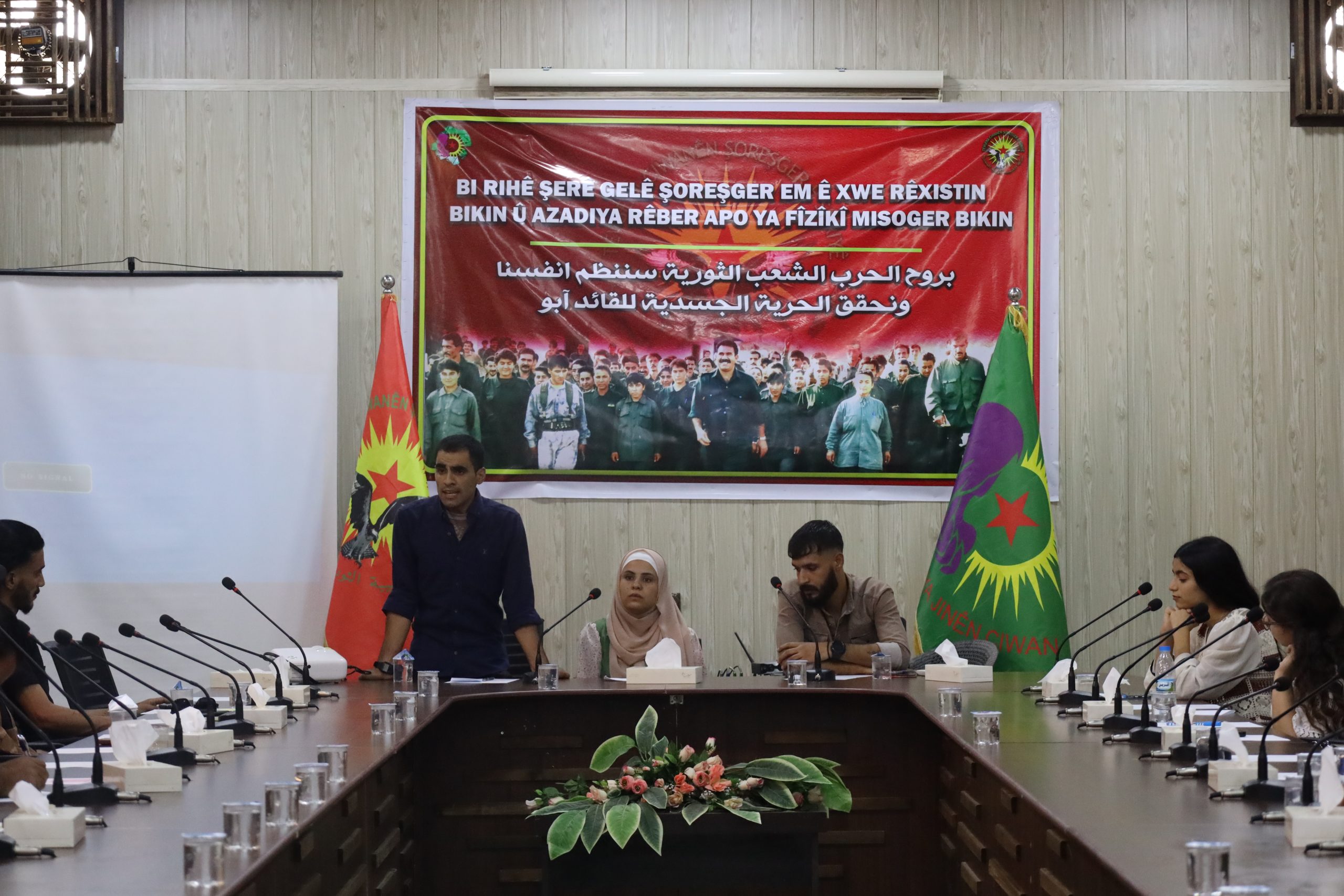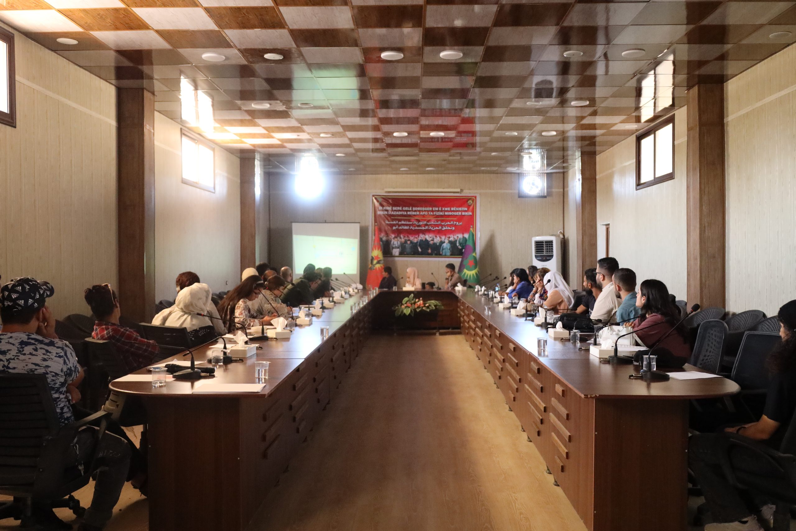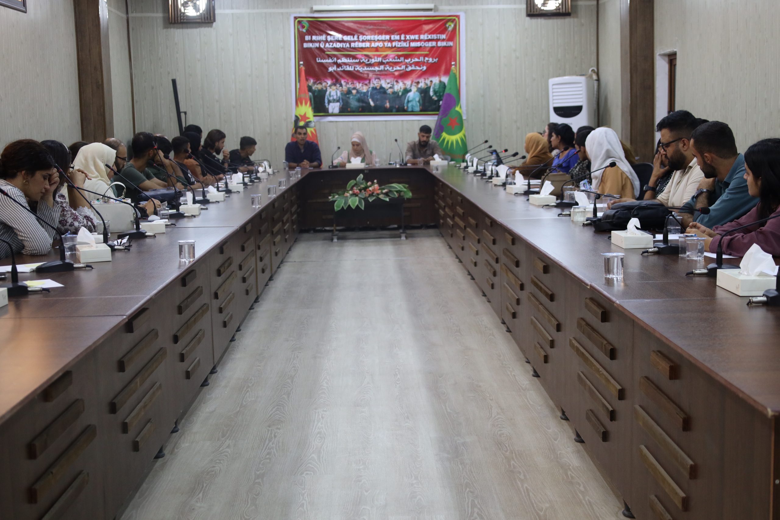 Bu temelde bugün Hesekê Devrimci Gençlik Hareketi ve Genç Kadınlar Birliği Ortaklığında Hesekê’de Devrimci Halk Savaşı konulu çalıştay düzenlendi. Onlarca gençlik üyesinin katıldığı toplantıda ayrıca Hesekê Öz Savunma Birlikleri ve Asayiş üyeleri de hazır bulundu.
