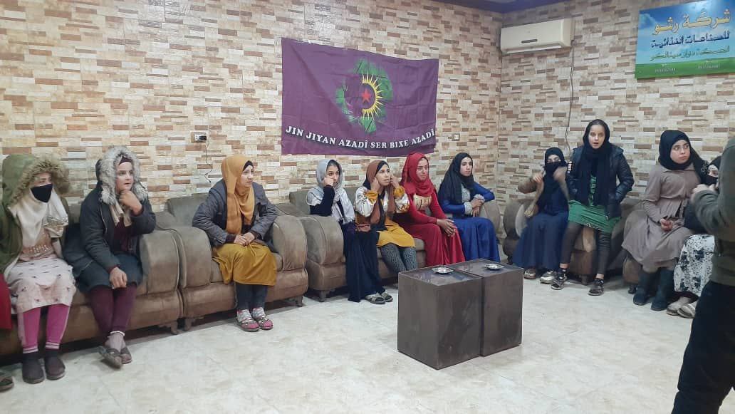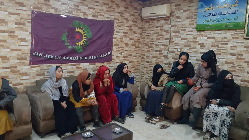 HESEKÊ-Hesekê Yekitiya Jinên Ciwan üyeleri, “25 Kasım Uluslararası Kadına Yönelik Şiddetle Mücadele Günü”ne dönük “Jin Jiyan Azadî Serbixe Azadî” kampanyası çerçevesinde düzenlediği faaliyetleri devam ediyor. Faaliyetler çerçevesinde bugün Heskê’de genç kadın işçilere seminer verildi.