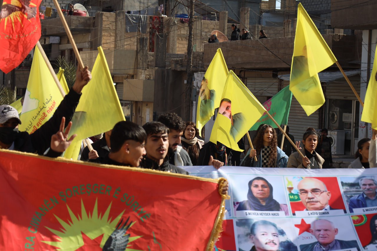 Yürüyüşe Hesekê, Dirbêsiyê, Zirgan, Til Temir, Hol, Şedadê ve Mergede gençleri katıldı. Yürüyüşte, Önder APO ve Tisrin Barajı direnişi şehitlerinin fotoğrafları ile QSD ve Suriye Devrimci Gençlik Hareketi’nin bayrakları taşındı. Gençler, “Yaşasın QSD, YPG ve YPJ” ve “Yaşasın QSD” sloganları eşliğinde yürüdü.
