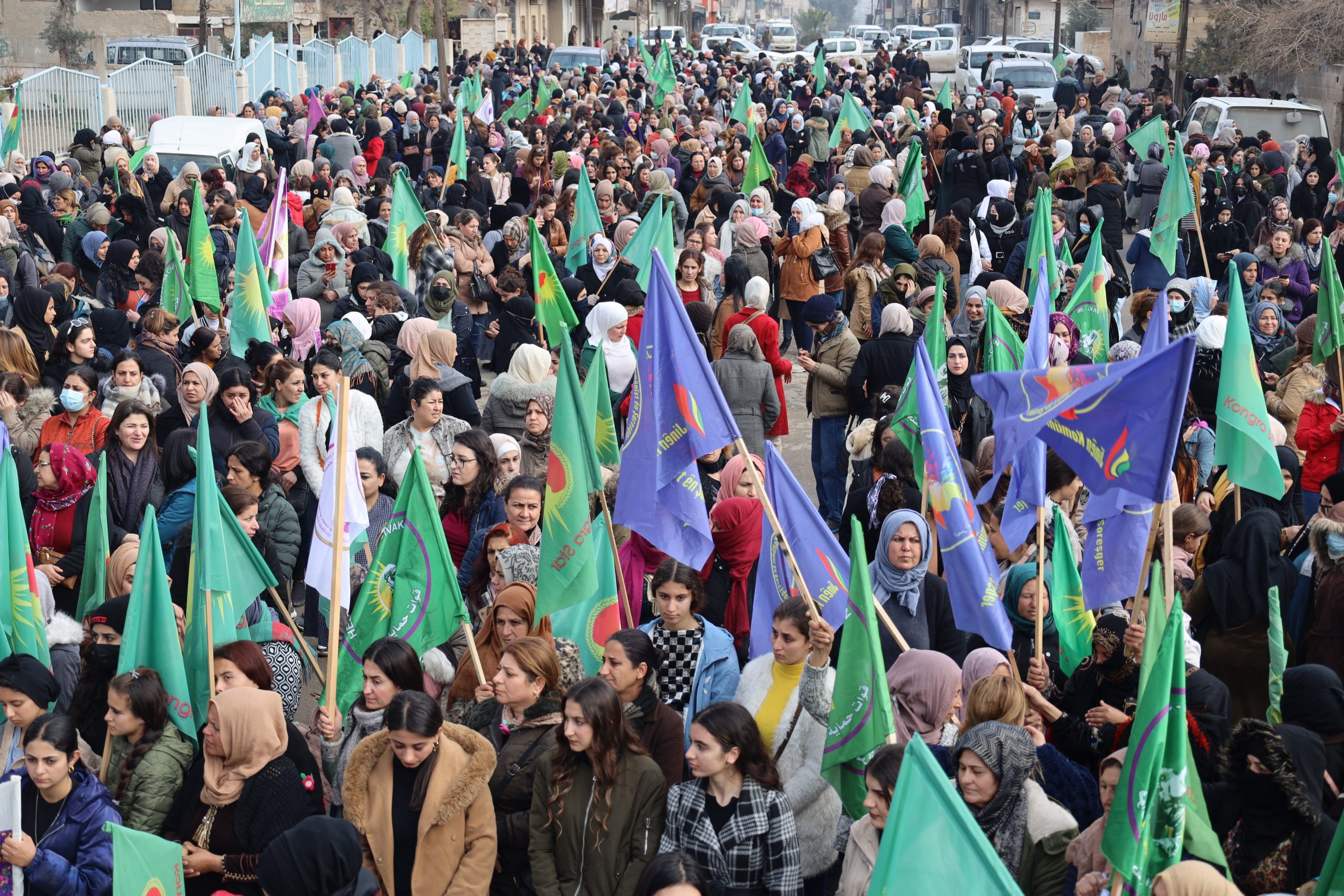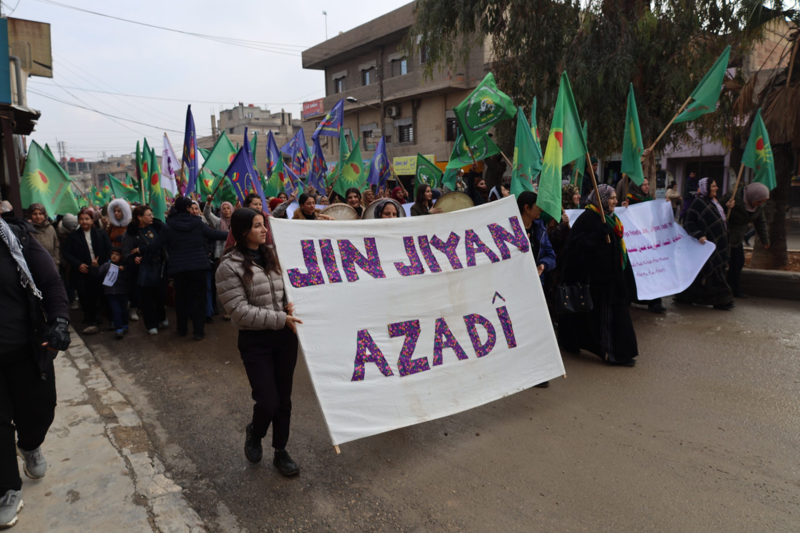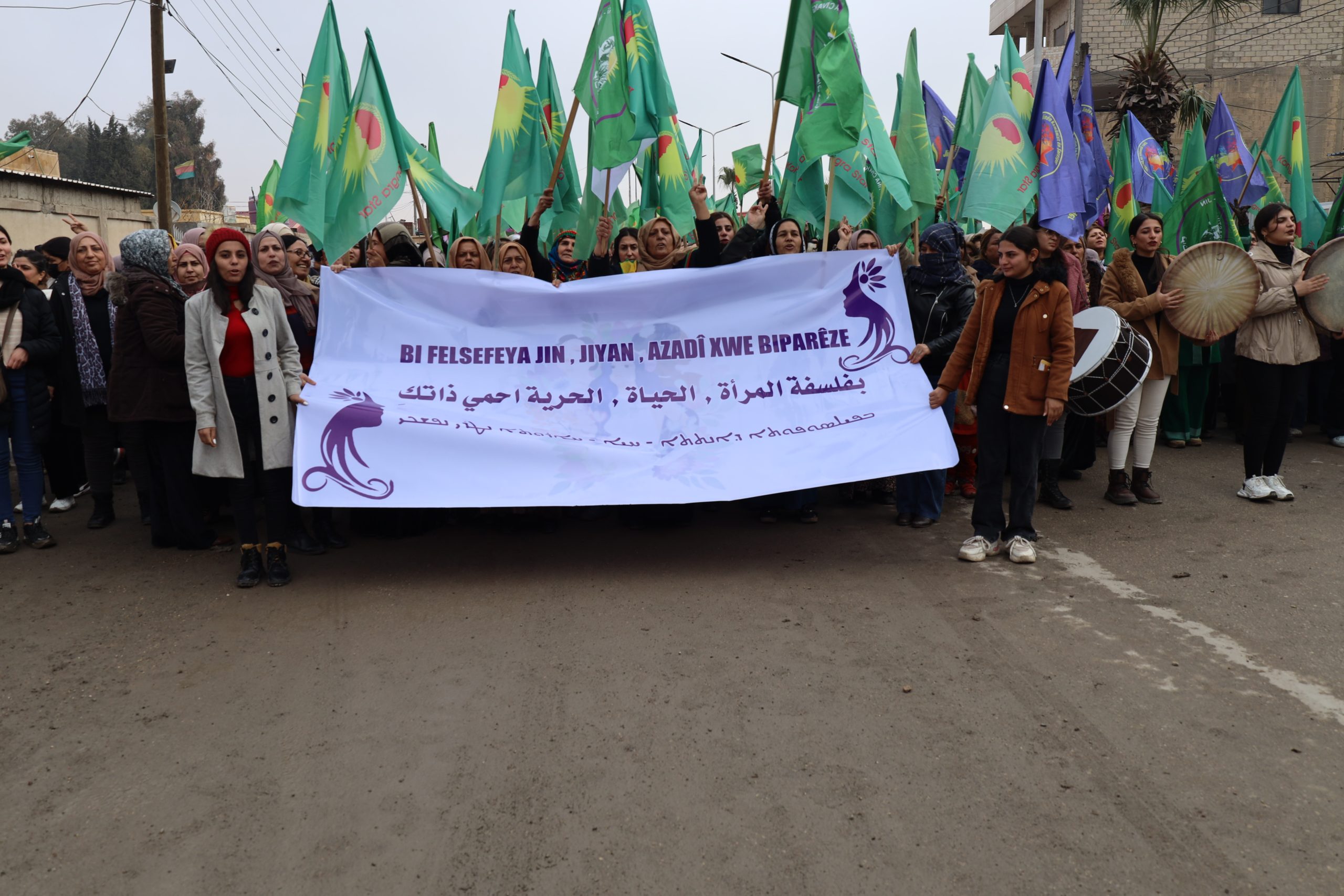 HESEKÊ – Demokratik ve özgür bir Suriye’nin inşasında kadınların rolünü ve varlığını vurgulamak amacıyla Kuzey ve Doğu Suriye’deki tüm kadın örgütleri ve hareketlerinin öncülüğünde Heseê şehrinde kitlesel yürüyüş düzenlendi.