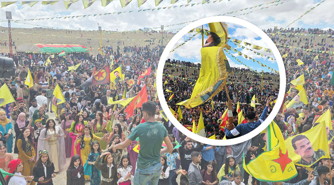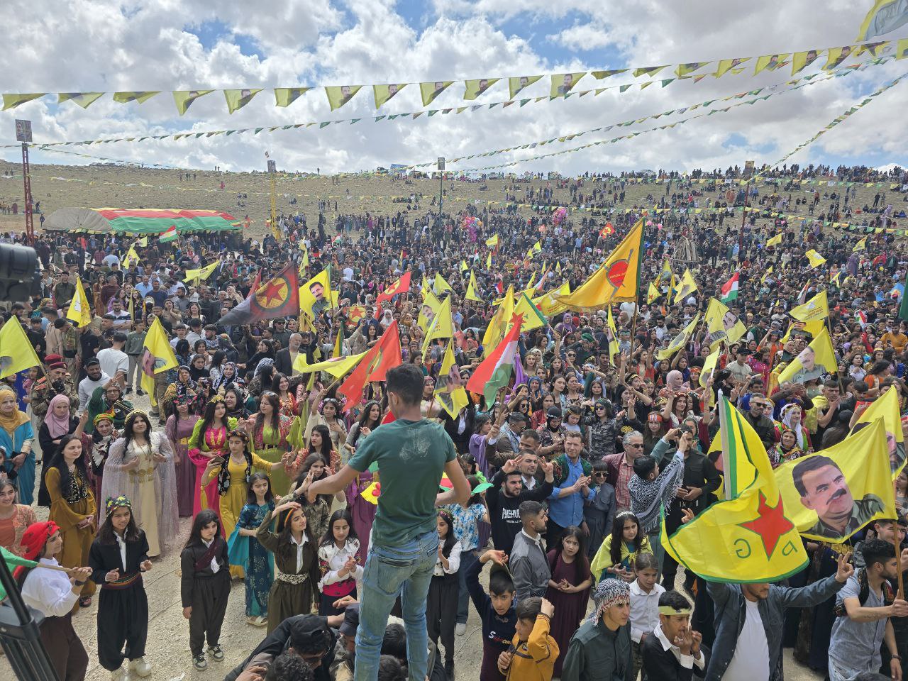 Kurdistan Özgürlük Şehitleri anısına bir dakikalık saygı duruşunda bulunduktan sonra halk ateş etrafında halaya durdu. Müzik gruplarının sahne aldığı kutlamada halk sık sık “Bijî serok Apo”, sloganları attı.