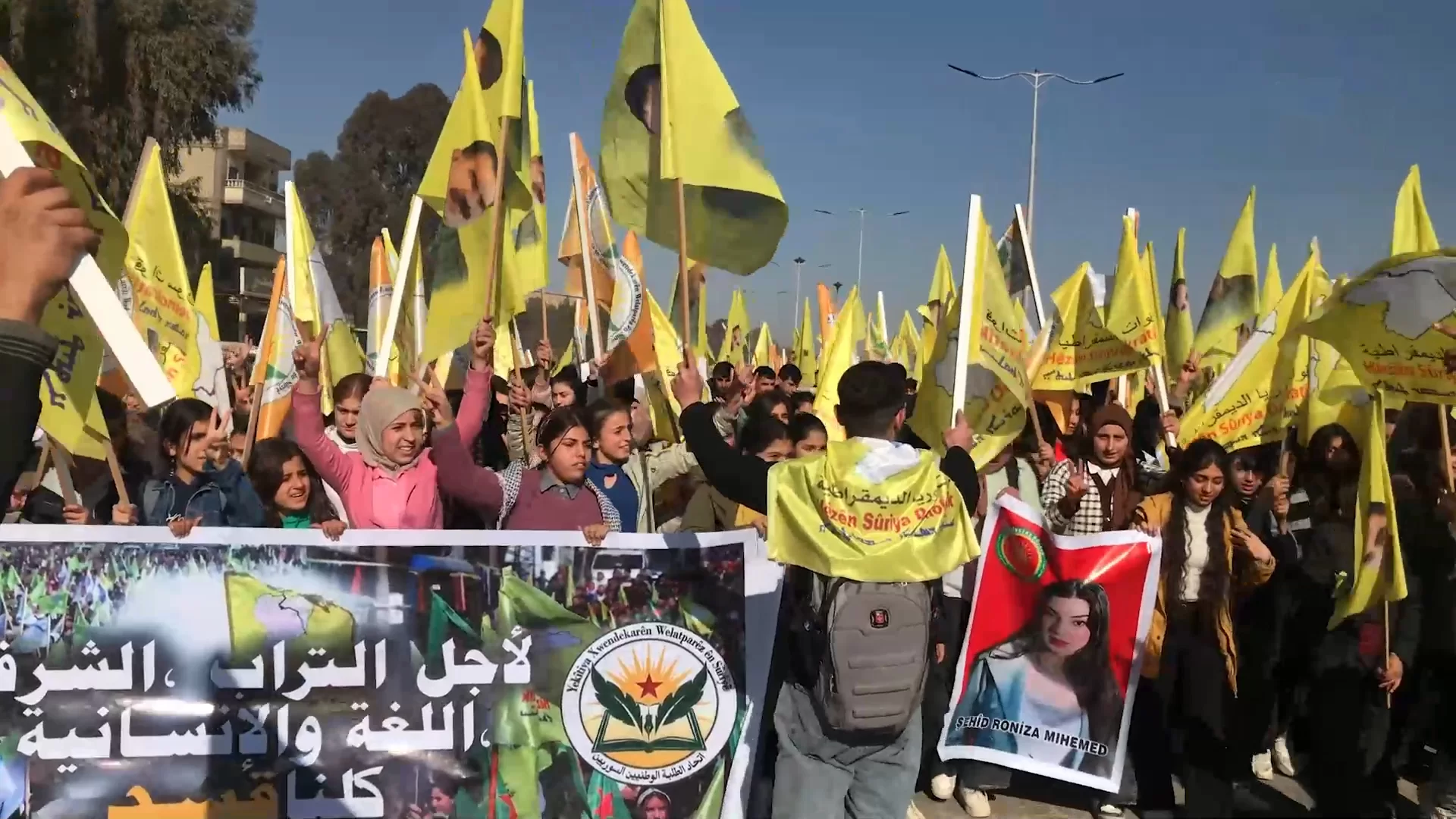 “Toprağımız, Onurumuz, Dilimiz ve İnsanlık İçin Hepimiz QSD’yiz” şiarıyla düzenlenen yürüyüş Hesekê kent merkezindeki Sînalko Kavşağı’nda başladı.