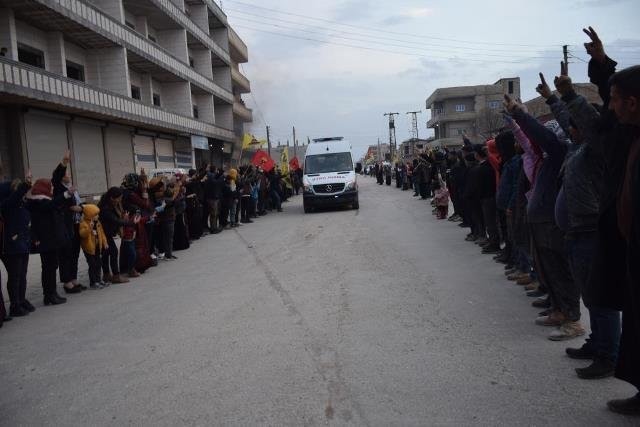 KOBANÊ – Hesekê’de düzenlenen Halkların Gürzü Hamlesi’nde şehit düşen 12 savaşçının cenazesi Kobanê’ye ulaştı. Hesekê’den yola çıkarılan cenazeleri karşılamak için toplanan yüzlerce kişi, teslim aldığı cenazeleri konvoy halinde Şehit Aileleri Meclisi’ne taşıdı.