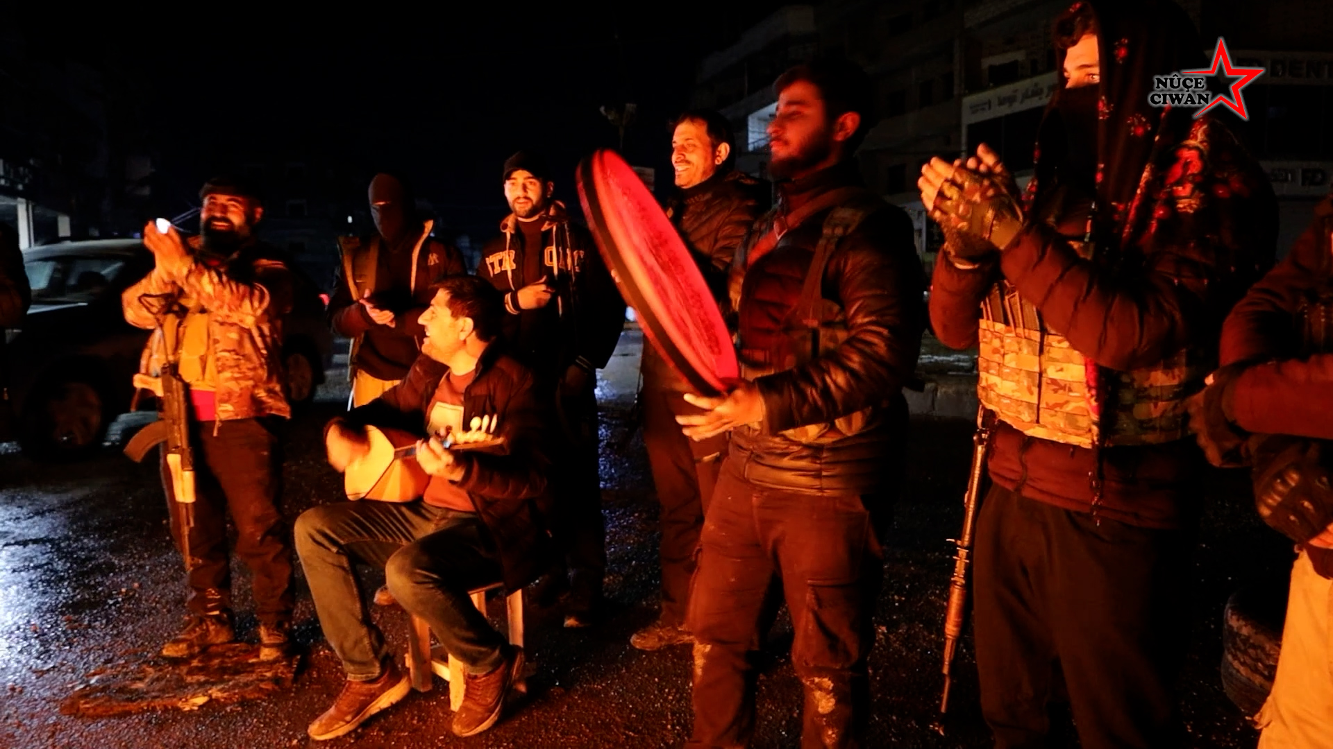 Mevzilerde Soğuk hava ve sınırlı imkânlar altında nöbet tutan savaşçılar, akşam saatlerinde ateş başlarında bir araya gelerek devrim şarkıları söyleyerek morallerini yüksek tutuyor.