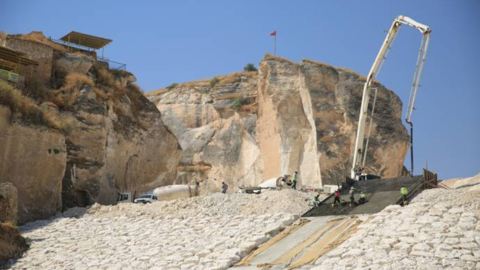 Tarihi kentin tamamı inşaat alanına dönerken, tarihi kale duvarlarının dibinde ise “antik liman” oluşturuluyor. Heskîf’in sular altında kalması durumunda kalenin üst kısımlarında adacık oluşturulacak. Oluşan bu adacığın gezilebilmesi amacıyla kale duvarlarının yanı başında liman kuruluyor. Limanın temelleri geçtiğimiz günlerde beton dökme işlemleriyle başladı. Ağır iş makinelerinin oluşturduğu basınç tarihi Küçük Saray’da çökme riskini yaratıyor.