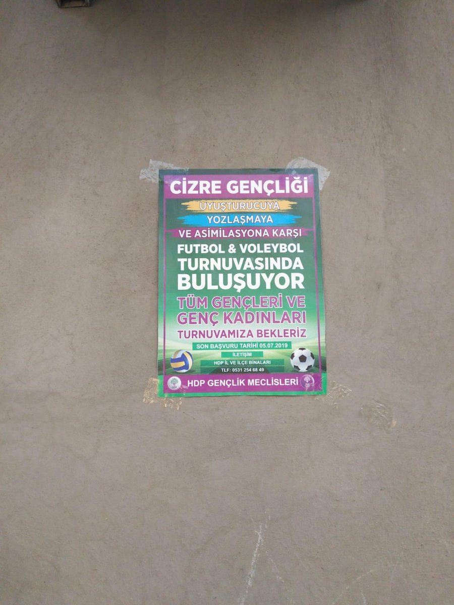 CİZÎRA BOTAN – Cizîra Botan ilçesinde, son yıllarda artış gösteren fuhuş ve uyuşturucuya karşı futbol ve voleybol turnuvası düzenlenecek. “Bağımlı olma özgür ol” şiarıyla gerçekleştirilecek olan turnuvalar için, 7 asil ve 3 yedek kişiden oluşan takımlar 5 Temmuz tarihine kadar başvuru yapabilecek. Başvuru ücreti takım başı 50 TL olarak belirlenen turnuvaya, kadınlar özgün takımlar olarak ya da karma takımlar olarak katılabilecek. Her takımın kendi ismi ile katılacağı turnuvadaki karşılaşmalar ise kura ile belirlenecek.