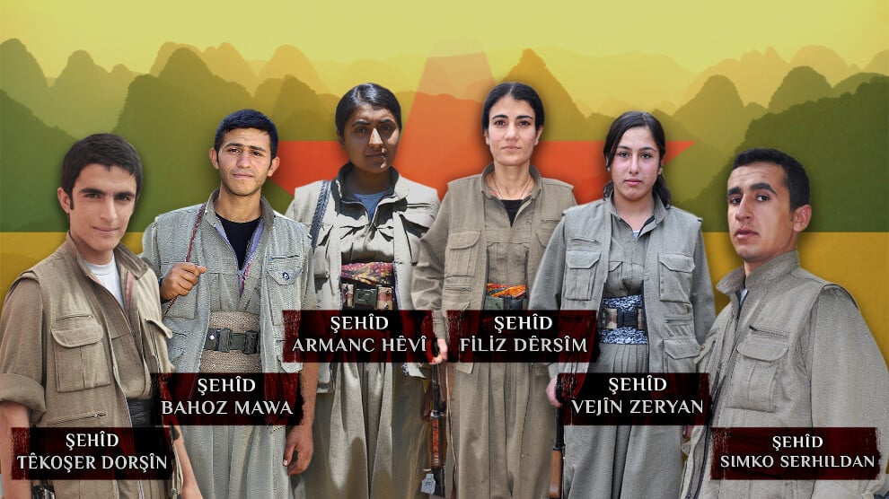 Vejîn, Filiz, Armanc, Bahoz, Simko ve Têkoşer yoldaşlarımız, soykırım saldırılarına karşı Kürt halkının varlığını korumak ve özgürlüğünü sağlamak için gerilla saflarına katıldılar. Kurdistan dağlarında gelişip güçlenerek ve gerilla taktiklerinde uzmanlaşarak yiğit birer militan haline geldiler. Yoldaşlarımız birçok zorlu alanda devrimci iradeyle çetin pratikler yürüttüler. Halkımızın özgürlüğü için ter döktüler, emek verdiler ve omuzlarındaki tarihi sorumluluğu layıkıyla yerine getirmeye çalıştılar. Bu temelde hiçbir fedakarlıktan kaçınmayarak ve canlarını da halkımızın özgürlük davasına adayarak cesurca savaştılar. Seçkin birer militan ve güzel insan haline gelen yoldaşlarımız, duruşları, pratikleri ve yaşamları ile tüm Kürt gençliğinin örnek alması gereken bir mücadeleyi ortaya koydular. Apocu fedai militanlar ve Kurdistan halkımızın yiğit evlatları olan Vejîn, Filiz, Armanc, Bahoz, Simko ve Têkoşer yoldaşlarımız, ardıllarına büyük bir mücadele mirası bırakarak şehadete yürüdüler. Şehit yoldaşlarımızı saygıyla anarken, amaçlarının takipçisi olup hayallerini mutlaka gerçekleştireceğimizin sözünü veriyoruz.