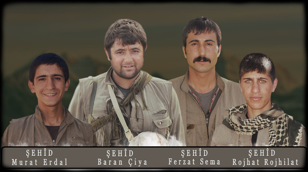 Fedai duruşlarıyla düşman saldırılarının en yoğun olduğu süreçte Apocu gerillacılığın yenilmezliğini kanıtlayan Baran, Ferzat, Murat ve Rojhat yoldaşlarımız, adlarını mücadele tarihimize yazdırdı. Türk devletinin tüm imkanlarını kullanarak geliştirdiği PKK’yi tasfiye etme amacına karşı Apocu fedai ruh ile cevap veren yoldaşlarımız, geliştirdikleri zengin taktiklerle Türk devletinin bu amacını boşa çıkarmayı başardı. Sahip oldukları yüksek inanç, özgürlük değerlerine olan sarsılmaz bağlılıkları ile tüm zorluklara göğüs germeyi başaran Baran, Ferzat, Murat ve Rojhat yoldaşlarımız, bugün açığa çıkan kazanımların ve tarihi gelişmelerin yaratıcılarından oldular. Bu nedenle halkımız ve değerli aileleri bu yiğit evlatları ile ne kadar gurur duysa yeridir. Kürt halkının varlığını borçlu olduğu bu fedai Apocu militanların bizlere devrettiği özgürlük mücadelesini ve dönem görevlerini onlar şahsında tüm şehit yoldaşlarımıza layık olmanın bilinciyle yerine getireceğimizin sözünü veriyoruz.