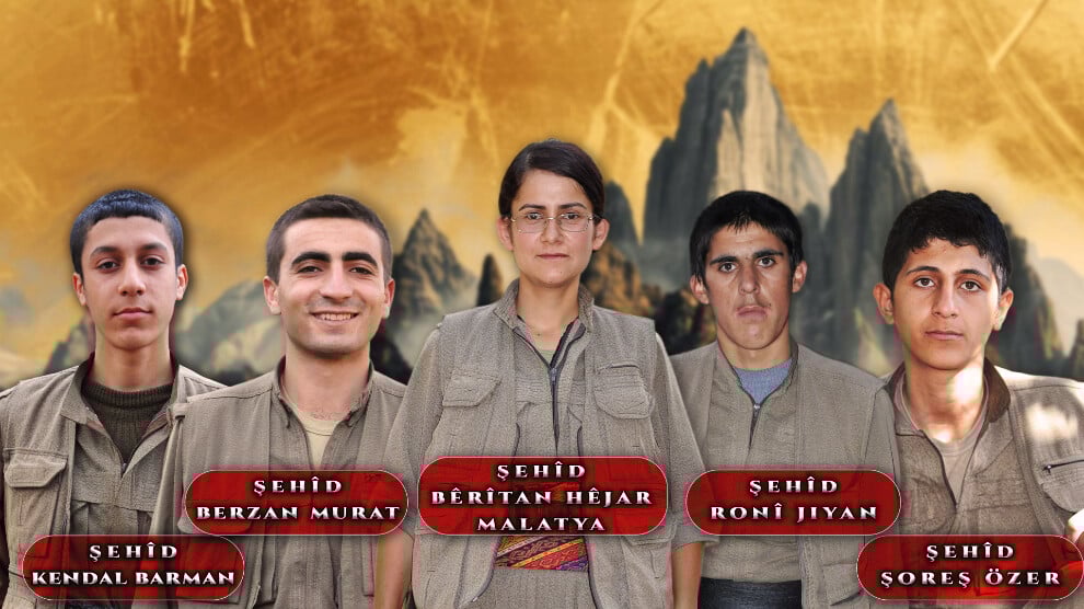 Bêrîtan, Berzan, Kendal, Şoreş ve Ronî yoldaşlarımız, halkların kardeşliğine ve özgürlüğüne inanarak mücadeleye katıldılar. Rêber Apo’nun paradigmasına duydukları derin bağlılıkla gerilla saflarındaki yerlerini aldılar. Kürt halkının varlığını korumak ve özgürlüğünü sağlamak için Kurdistan dağlarındaki direnişe dahil oldular. Apocu fedai ruhla kuşanan yoldaşlarımız büyük bir çaba, emek ve fedakarlıkla bu kutsal mücadelede üzerlerine düşeni yapmaya çalıştılar. Hareketimizin yoğun bir savaş sürecinden geçtiği ve emsalsiz direnişlerin yaşandığı bir dönemde üstlendikleri her çalışmayı büyük bir titizlikle yerine getirmeyi esas aldılar. Devrimci yaşamları, içten yoldaşlıkları, fedakarlıkları, erdemli kişilik özellikleri ve duruşlarıyla örnek birer militan olmayı başardılar. Cesaretleri, fedakarlıkları ve derin yoldaşlıkları ile bulundukları her alanda başarı yaratan devrimciler olmayı bildiler. Kürt ve Türk halkının asil ve yiğit evlatları olarak omuz omuza verip halkların kardeşliği için mücadele ederek özgür geleceğimizin teminatı haline geldiler.