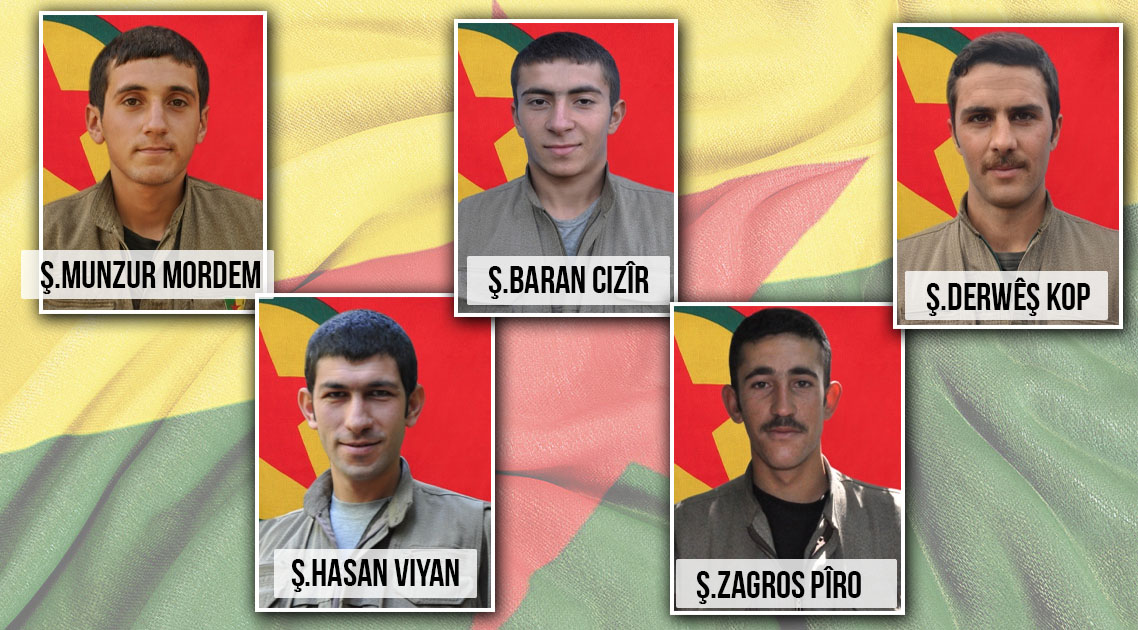 “Medya Savunma Alanları’ndaki mücadele sürecine fedaice katılan ve 2017 yılında şehadete ulaşan Munzur Mordem, Baran Cizîr, Zagros Pîro, Derwêş Kop ve Hasan Viyan yoldaşlarımızı saygıyla anıyoruz.