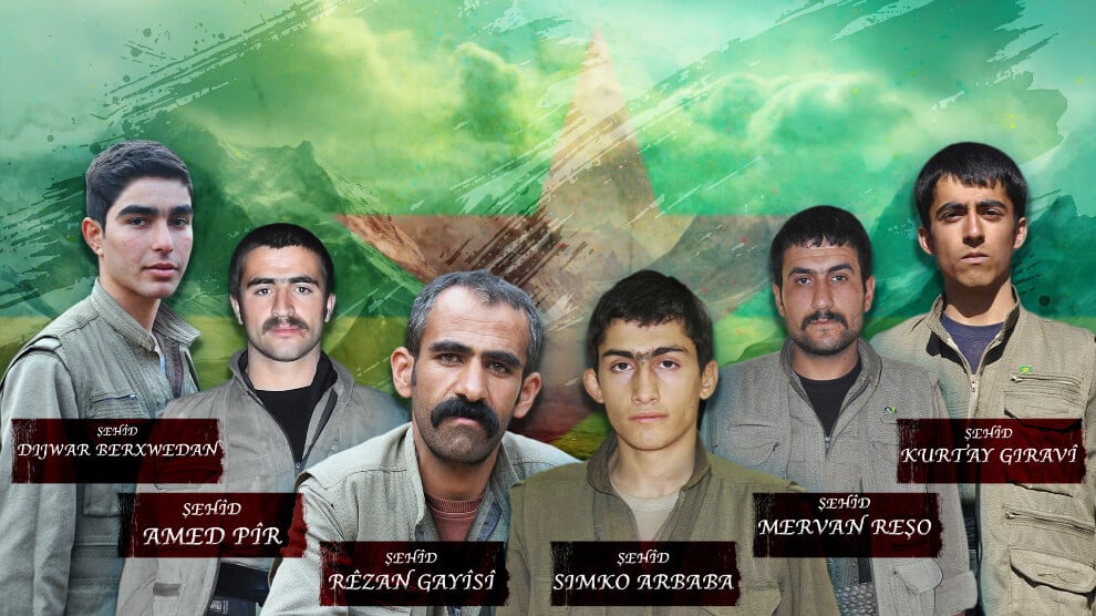 “Kürt halkının özgürlük mücadelesinin sarsılmaz militanları olan Rêzan, Mervan, Amed, Kurtay, Dijwar ve Simko yoldaşlarımız Medya Savunma Alanları’nda farklı tarihlerde gerçekleşen düşman saldırıları sonucunda şehadete ulaştılar.