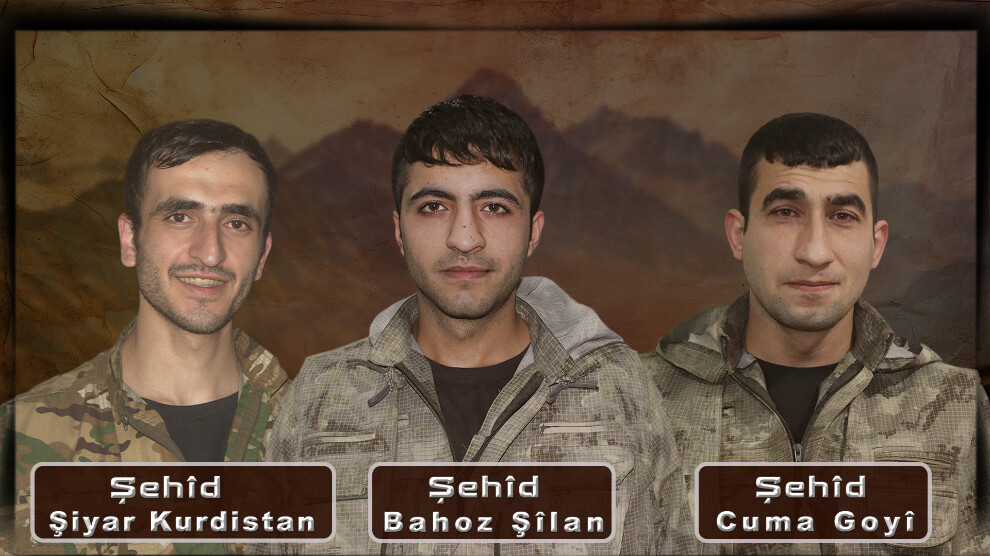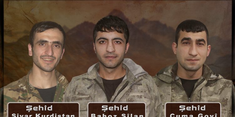 “Bahoz Şîlan, Cuma Goyî ve Şiyar Kurdistan yoldaşlarımız, 12 Ocak 2025 günü Şehîd Delîl Batı Zap bölgesinde düşmanla yaşanan temas, ardından gerçekleşen çatışma ve düşman bombardımanları sonucunda şehadete ulaştılar.